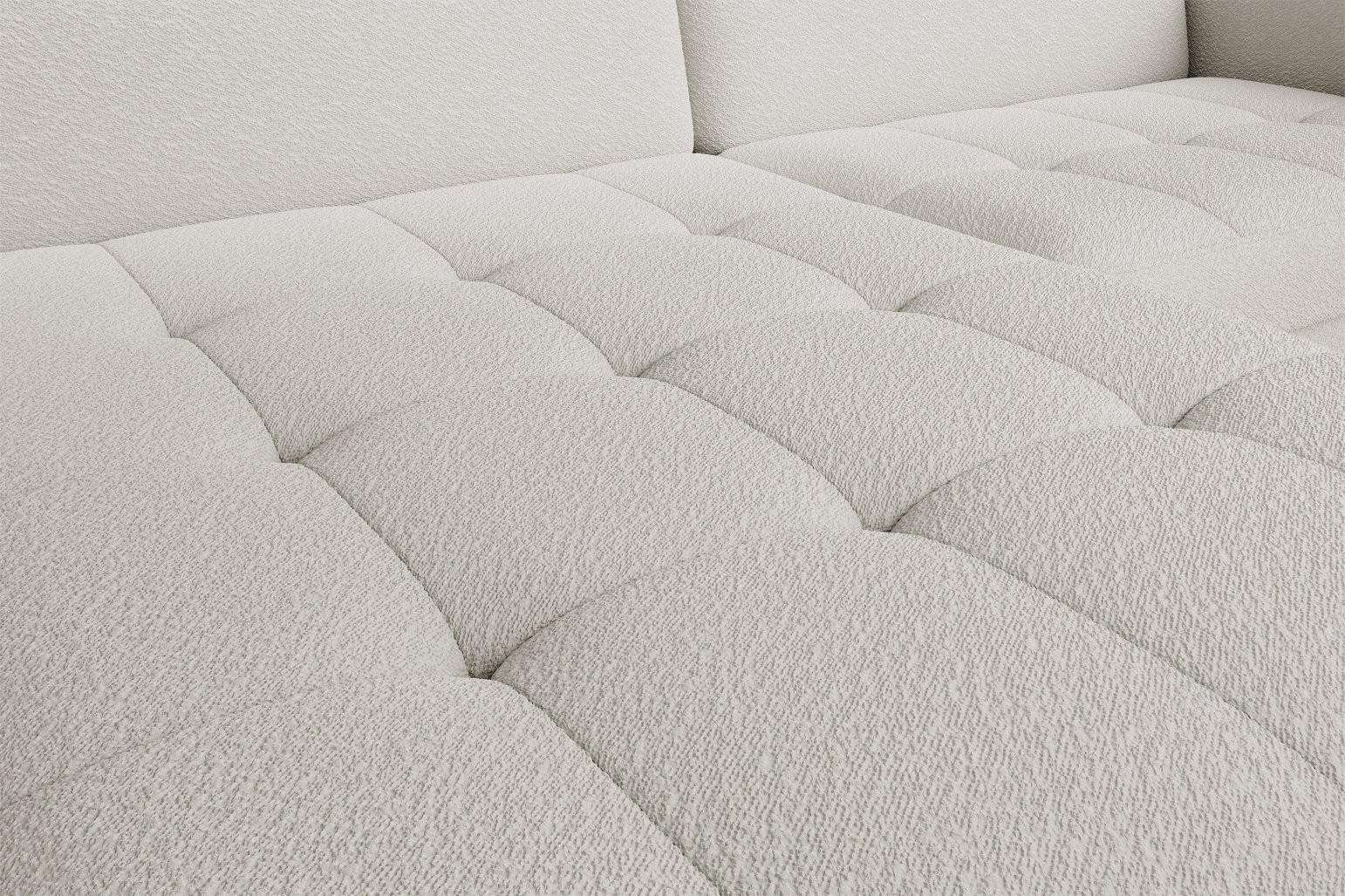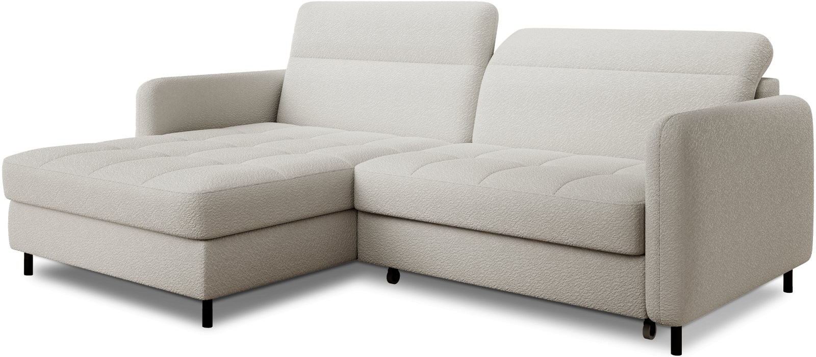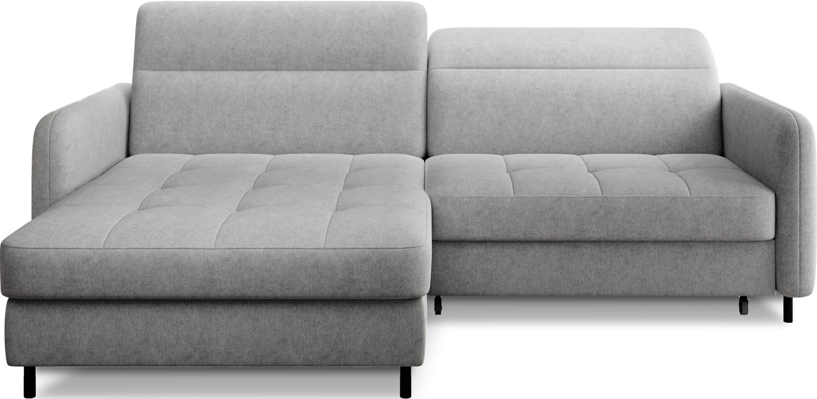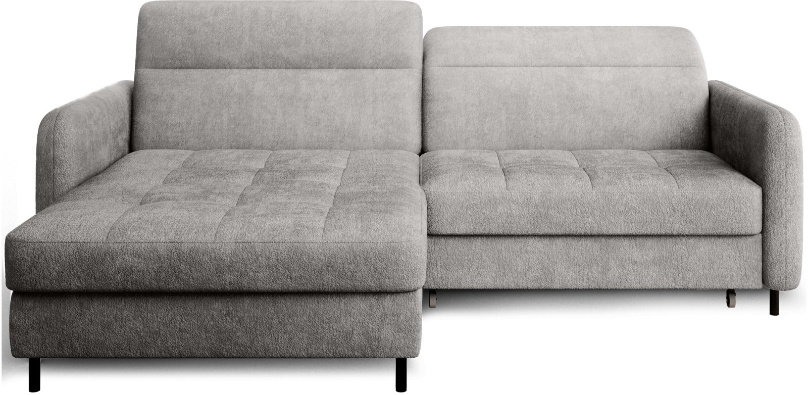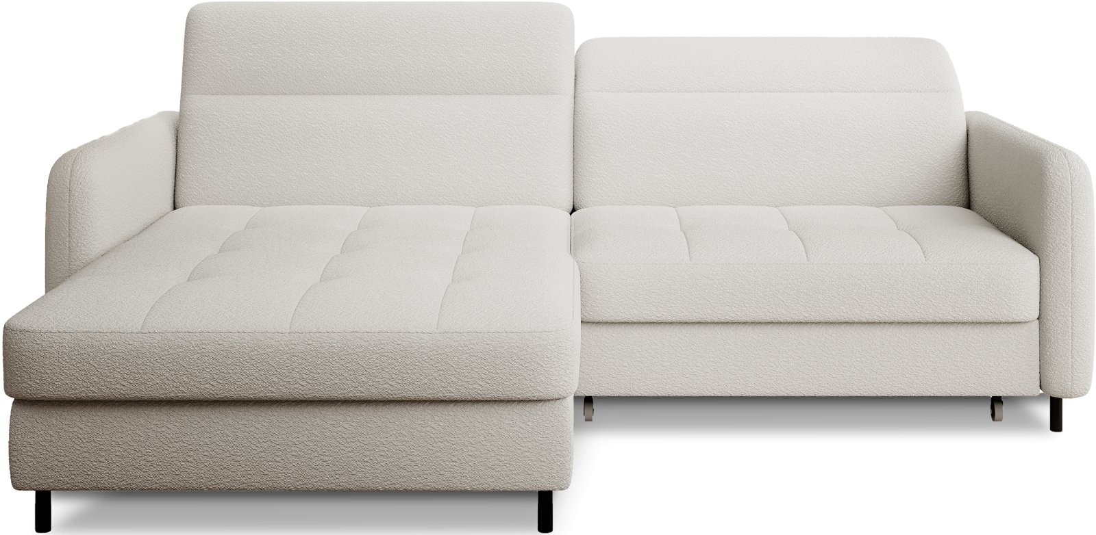 Oblazinjeno hrbtišče omogoča postavitev kjerkoli v prostoru, medtem ko črne kovinske noge in prešiti sedeži dodajo pridih prefinjenosti. Garnitura je opremljena s funkcijo spanja, ki ponuja ležišče velikosti 128x200 cm – popolno za sprostitev ob gledanju priljubljenih filmov ali kot dodatno ležišče za goste.