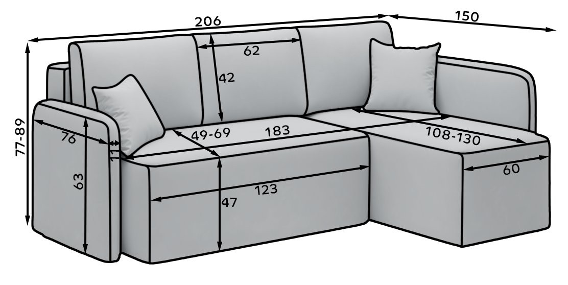 Garnitura Hadson je popolna izbira za vse, ki iščejo kombinacijo udobja, praktičnosti in sodobnega dizajna. Z možnostjo prilagoditve orientacije in barve se enostavno prilega vsakemu prostoru.