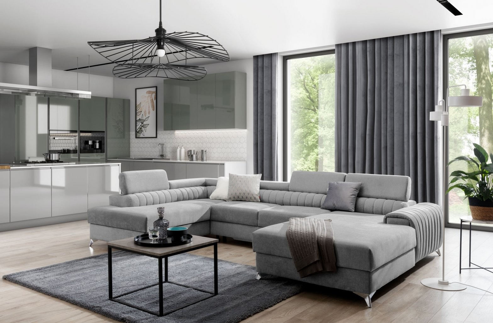 Kotna sedežna garnitura Lacante je popolna izbira za vse, ki iščejo udobje, funkcionalnost in moderen dizajn v enem kosu pohištva. S svojim sodobnim videzom, kromiranimi jeklenimi nogami in nastavljivimi vzglavniki bo osvežila vsak dnevni prostor.