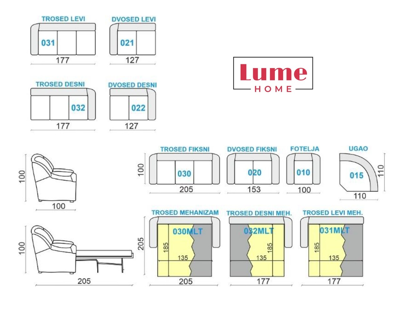 Sedežna garnitura Nicolas je izdelana v Evropi in ponuja najboljše razmerje med ceno in kakovostjo, kar je zaščitni znak blagovne znamke Lume Home. Z uporabo vrhunskih materialov in skrbno načrtovane izdelave je garnitura zasnovana tako, da zdrži leta uporabe, ne da bi pri tem izgubila na udobju ali vizualni privlačnosti.