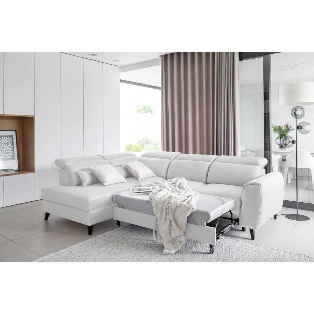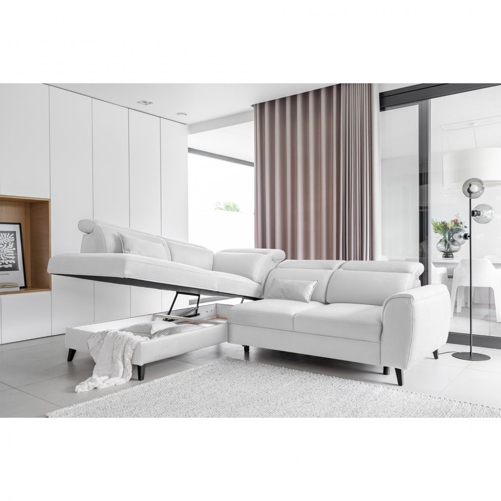 Kotna sedežna garnitura Noble združuje funkcionalnost, udobje in estetsko dovršenost, kar jo naredi popolno izbiro za vsak sodoben dom. Z možnostjo konfiguracije po barvi in orientaciji se prilagodi vašim željam in prostoru.