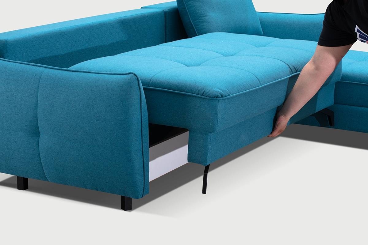 Dodatni detajli, kot so šivi v barvi tkanine ali v kontrastni barvi, poudarijo prefinjen videz sedežne garniture, medtem ko čvrsto ogrodje zagotavlja maksimalno vzdržljivost in dolgo življenjsko dobo.