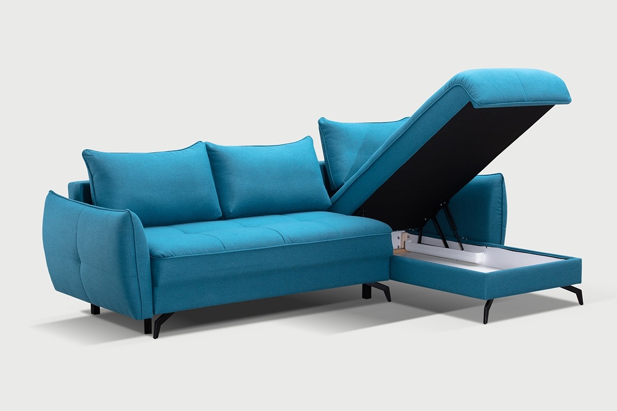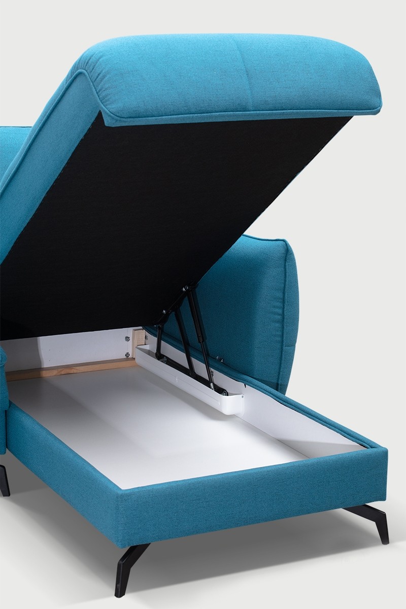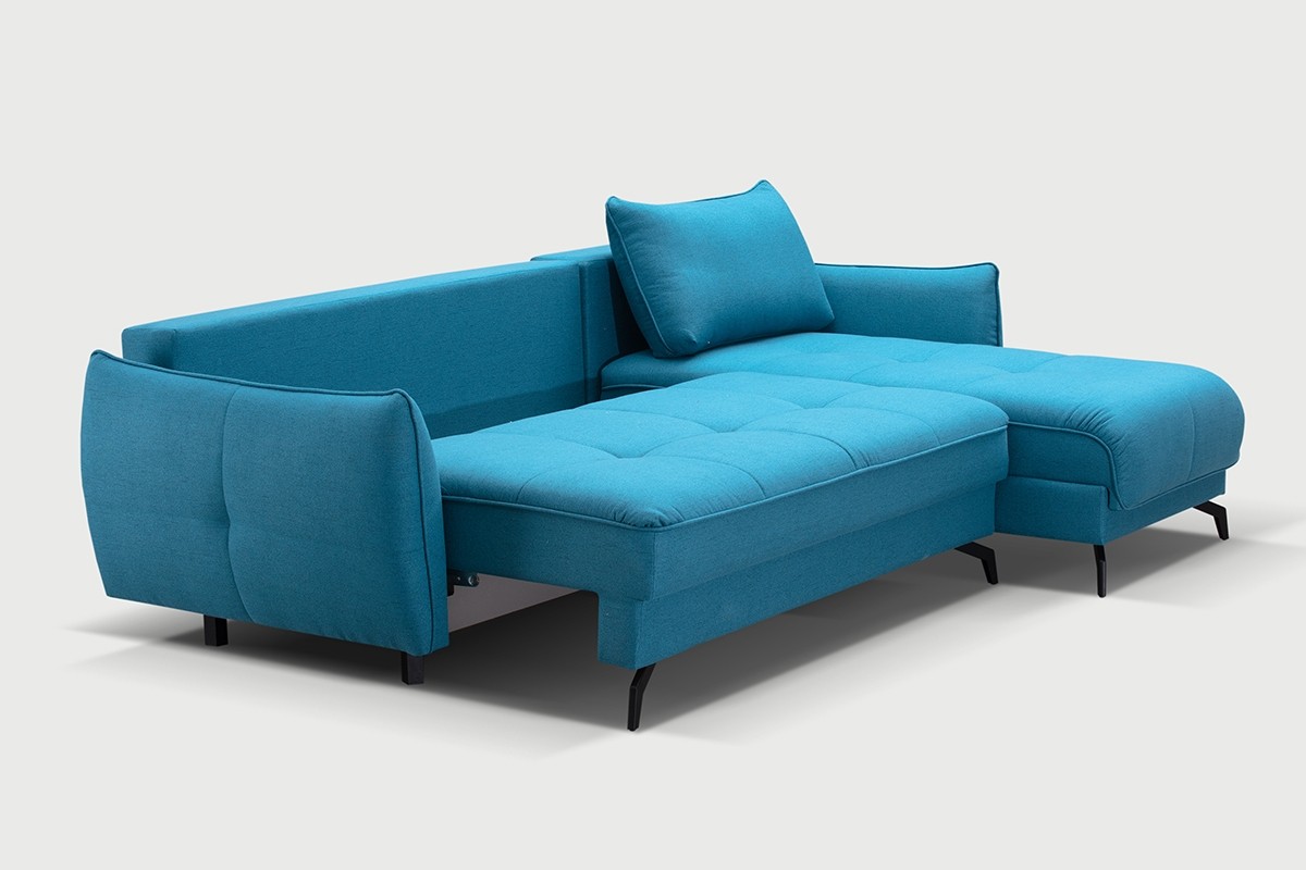Posebnost garniture je mehanizem za spuščanje naslona, ki omogoča hitro in enostavno pretvorbo v udobno ležišče dimenzije 1450 x 1570 mm.
