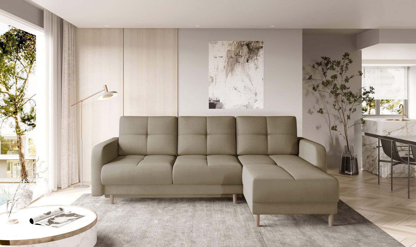 Kotna sedežna garnitura Roxi združuje eleganco, praktičnost in udobje, kar jo naredi popolno izbiro za srednje velike dnevne prostore. S svojo vsestranskostjo in funkcionalnostjo bo hitro postala središče vašega doma.