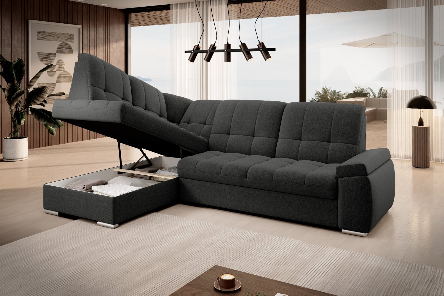 Kotna sedežna garnitura Sado je popolna izbira za vsak sodoben dom, ki išče udobje, funkcionalnost in eleganten videz. Z dimenzijami 272 x 192 x 95 cm nudi obilo prostora za sprostitev, gledanje filmov ali branje knjig.