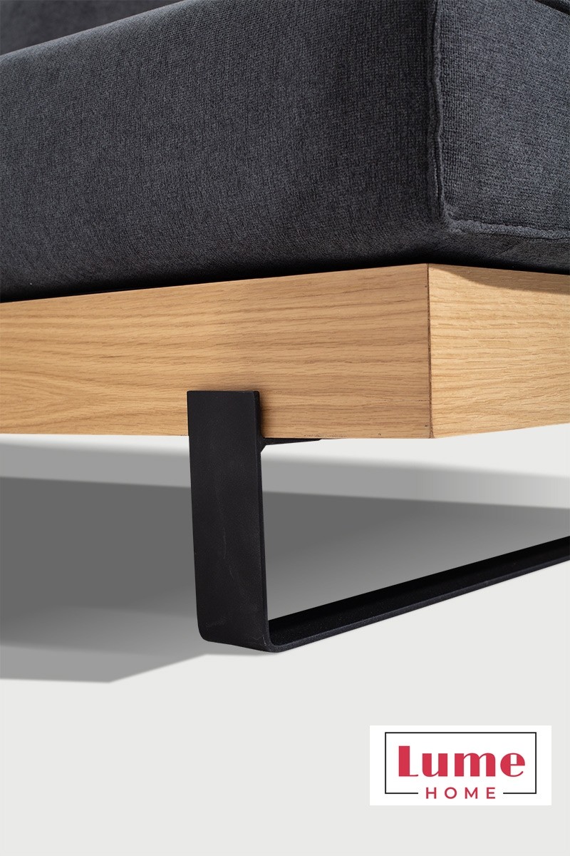 Elegantni šivi v barvi tkanine poudarijo prefinjen dizajn, kovinske noge pa dodajo sodoben pridih in dodatno stabilnost.