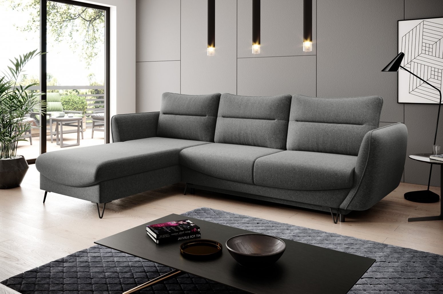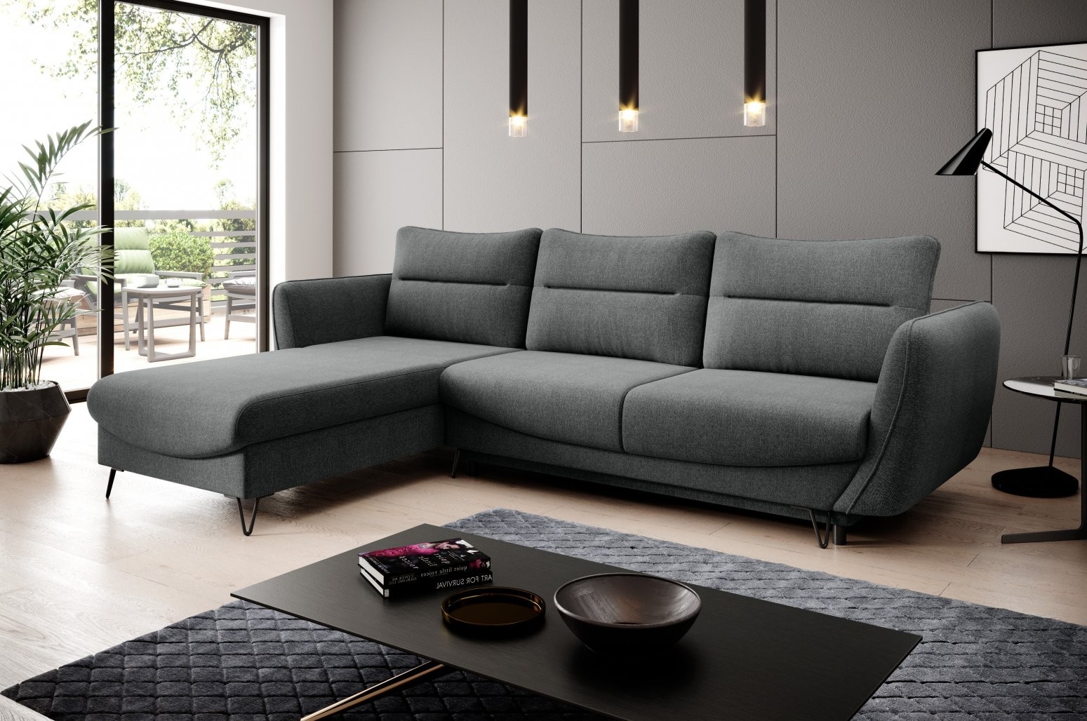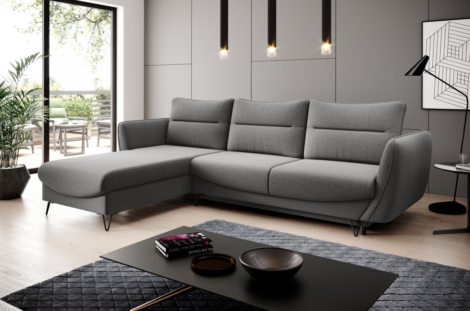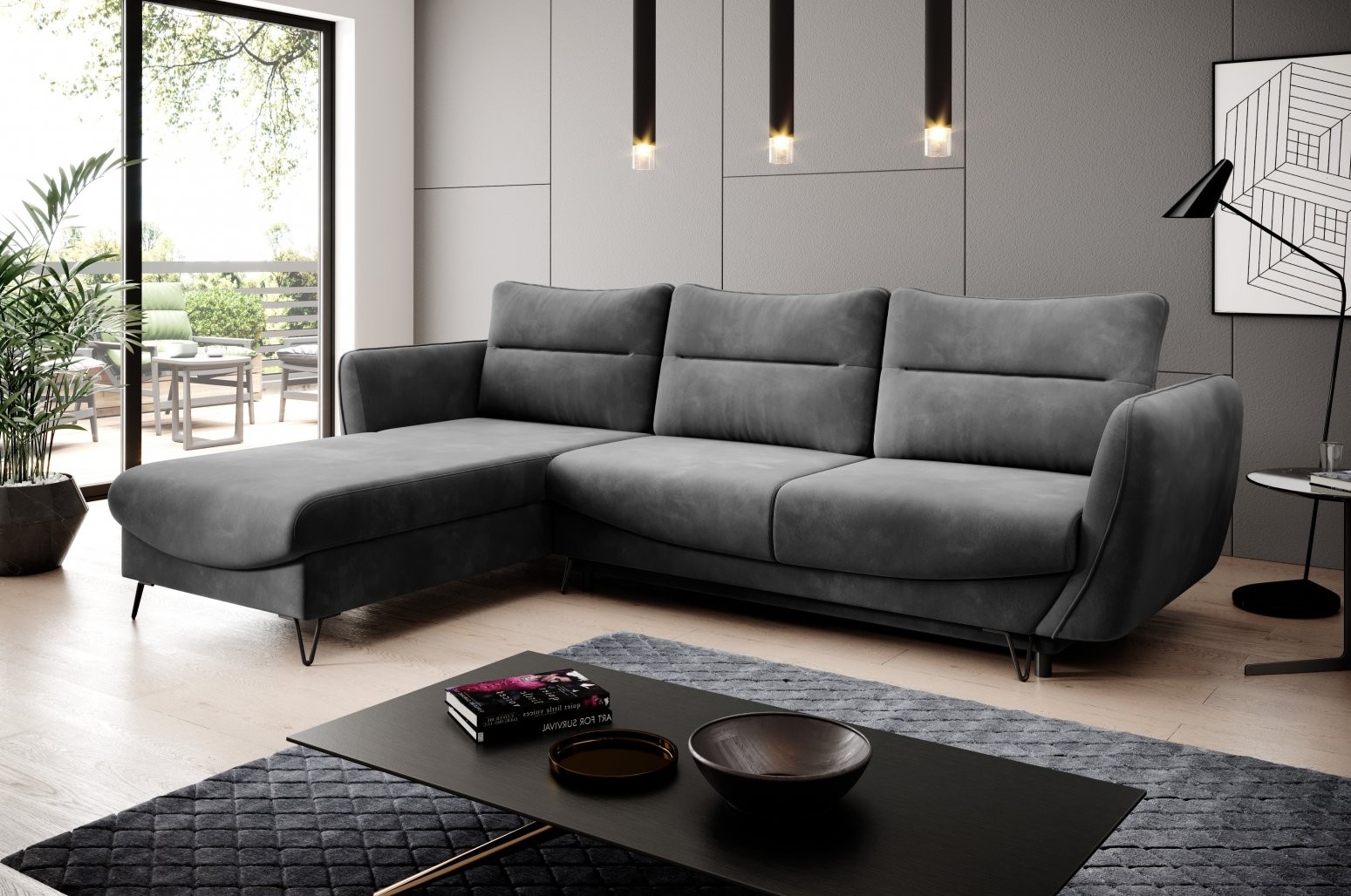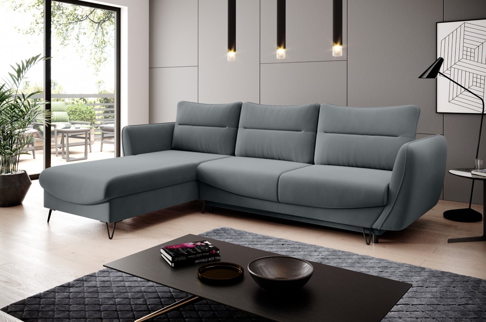 Kotna sedežna garnitura Silva združuje brezčasno eleganco z vrhunsko funkcionalnostjo, zaradi česar je popolna izbira za vsak sodoben dom. Njene črne jeklene noge dodajo pridih modernosti, medtem ko oblika v črki L omogoča prijetno druženje in udobno sprostitev.