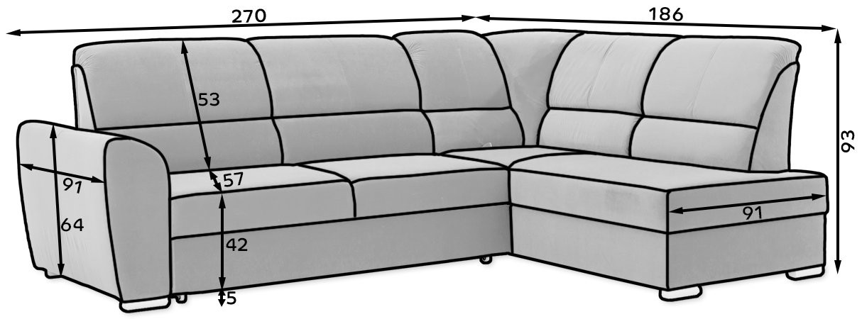 Ta sedežna garnitura ponuja prostorno ležišče, velik shranjevalni predal in nastavljive naslone za hrbet, ki omogočajo popolno sprostitev ob gledanju televizije ali branju knjige.