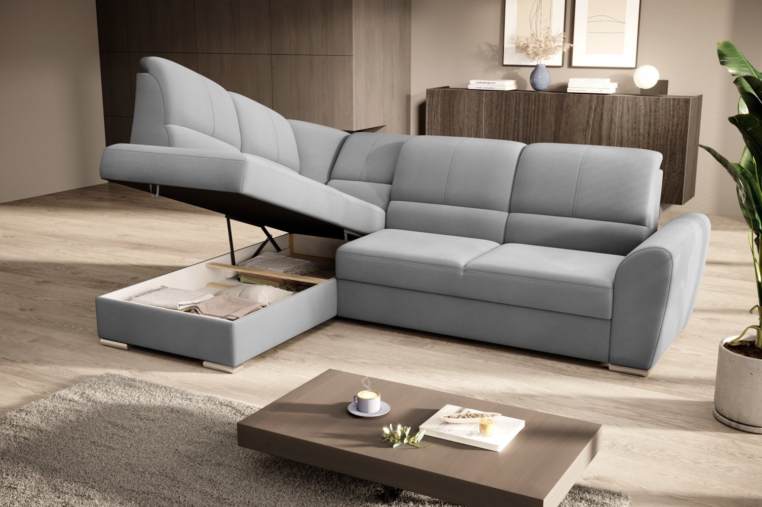Kotni kavč Siber je idealna izbira za vse, ki cenijo red, udobje in funkcionalnost. S svojo elegantno zasnovo in praktičnimi rešitvami zagotavlja popolno udobje v vsakem domu.