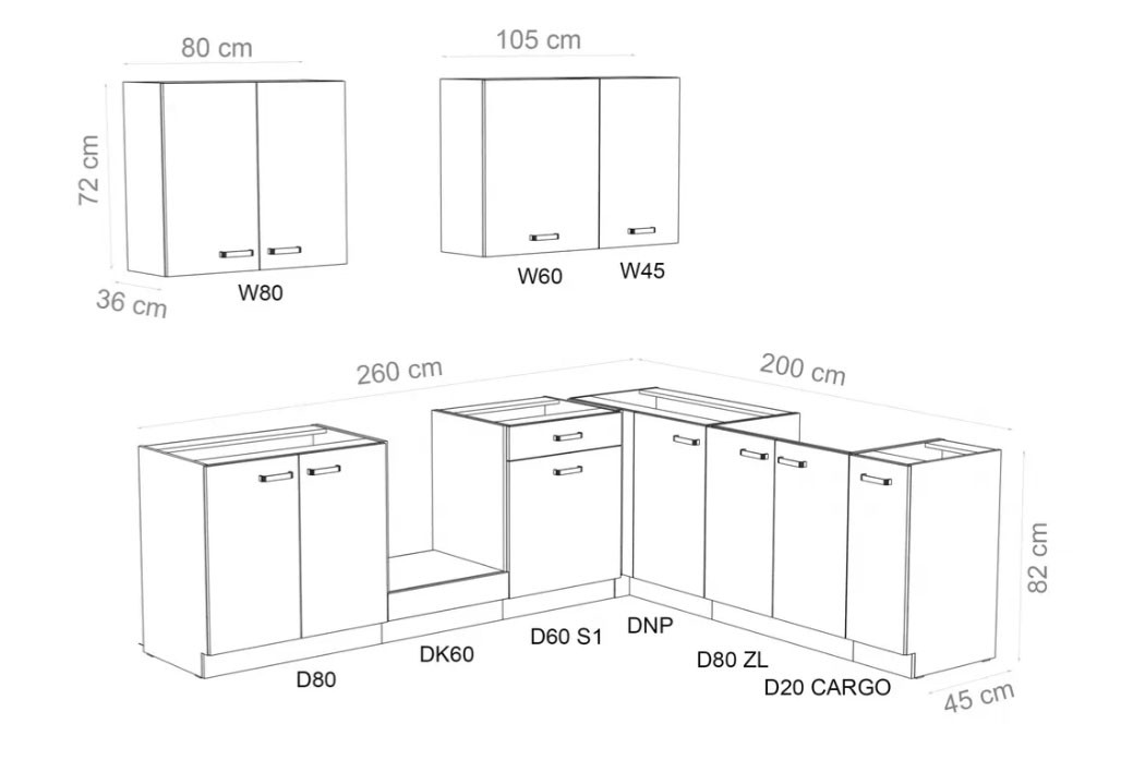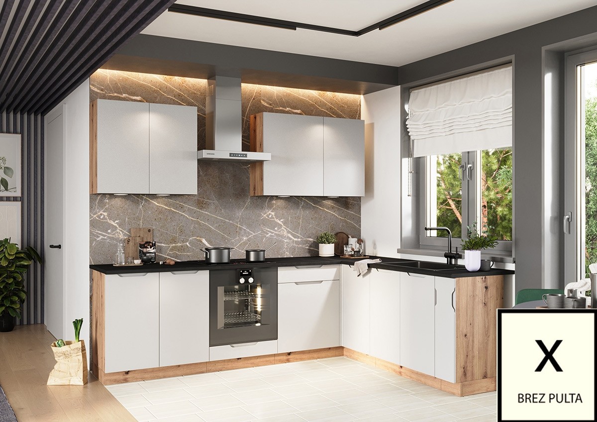 Kuhinjski set ISABEL izstopa s svojim brezročajnim in minimalističnim dizajnom. Prostorne omarice in predali zagotavljajo praktičnost, mat fronte pa dodajo eleganco. Izdelana je iz trpežnih materialov za dolgo življenjsko dobo. Kuhinjski pult ni vključen in ga je potrebno kupiti ločeno.