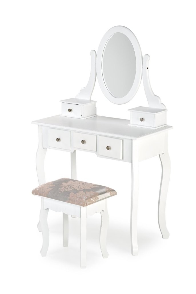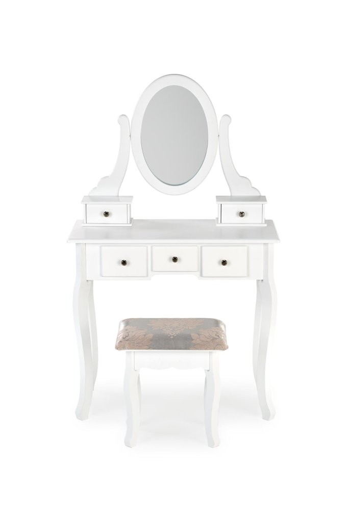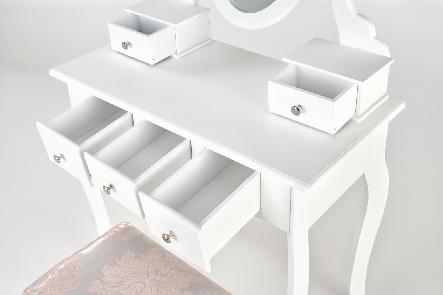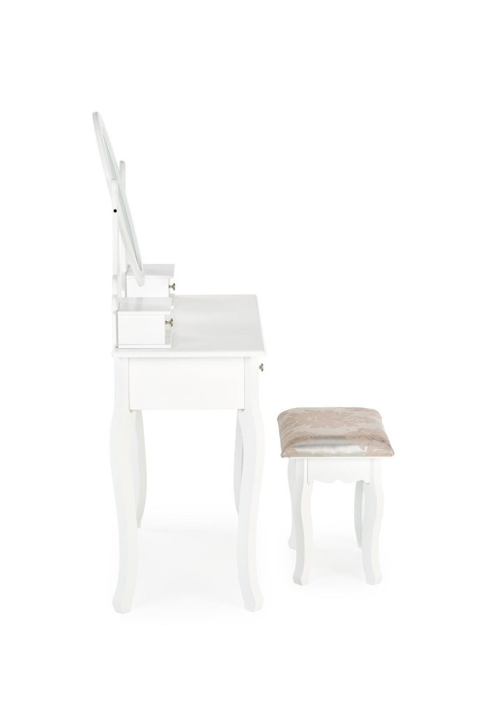 Kozmetična miza Alven je idealna za urejanje s svojim prefinjenim videzom. Izdelana iz lakiranega MDF in stekla, vključuje stol in se ponaša z elegantno belo barvo.