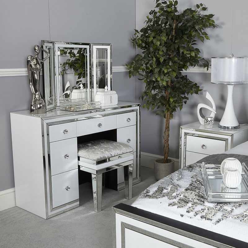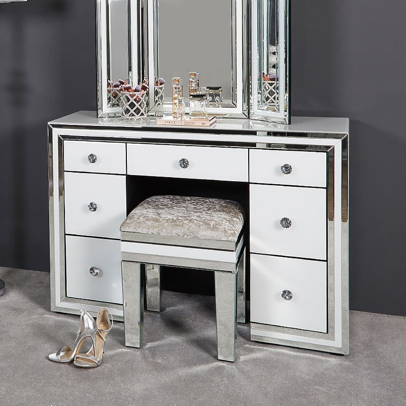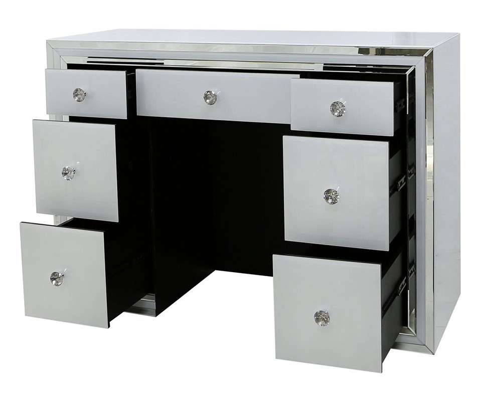 S kozmetično mizico GRANTVILLE GLAM se boste vsak dan z veseljem prebudile in pričele urejati za novi dan. Mizica ima 7 predalov, ki vam nudijo obilo prostora za shranjevanje in dobro organizacijo vaših ličil in drugih kozmetičnih pripomočkov. Predali imajo funkcijo mehkega zapiranja, ki vam omogoča lažjo uporabo ter preprečuje nastajanje trenja in poškodb, zato vam bo mizica dobro služila dlje časa.