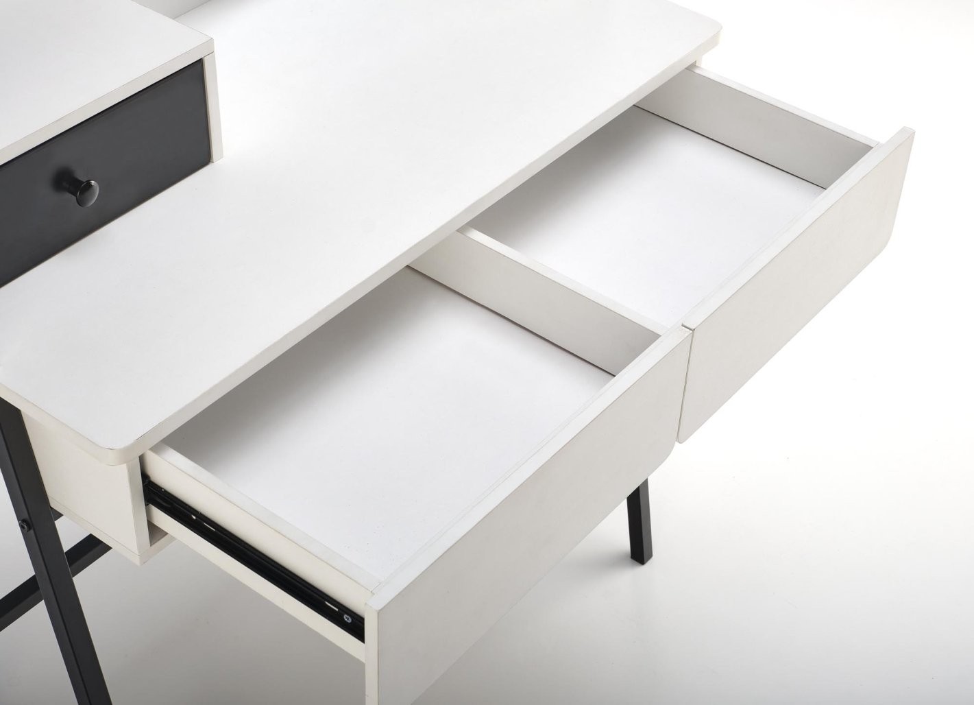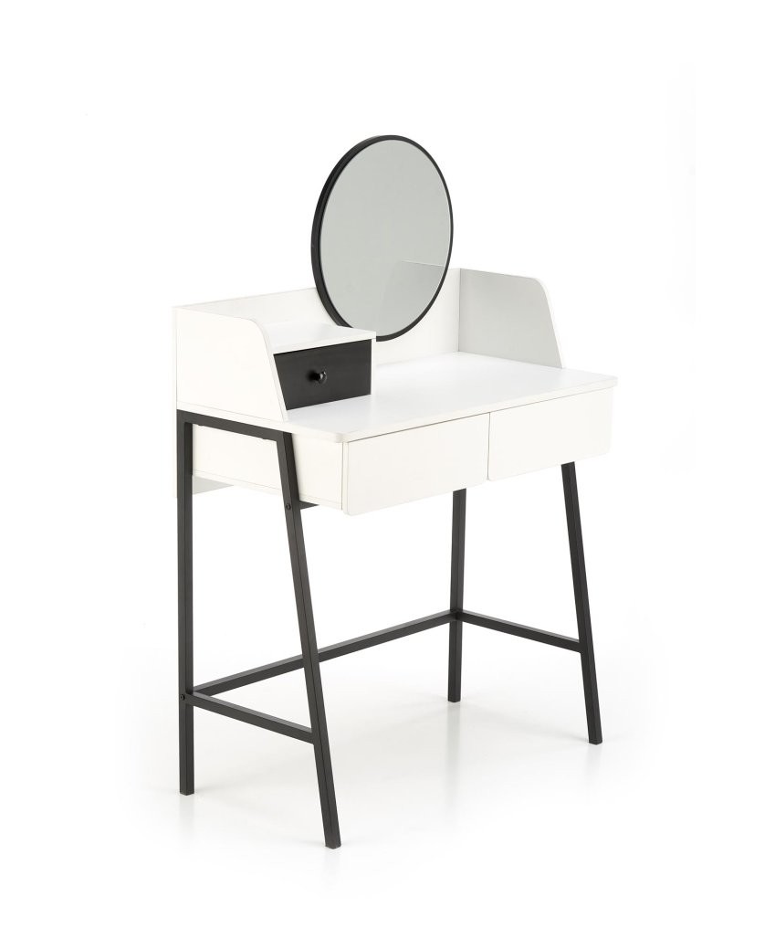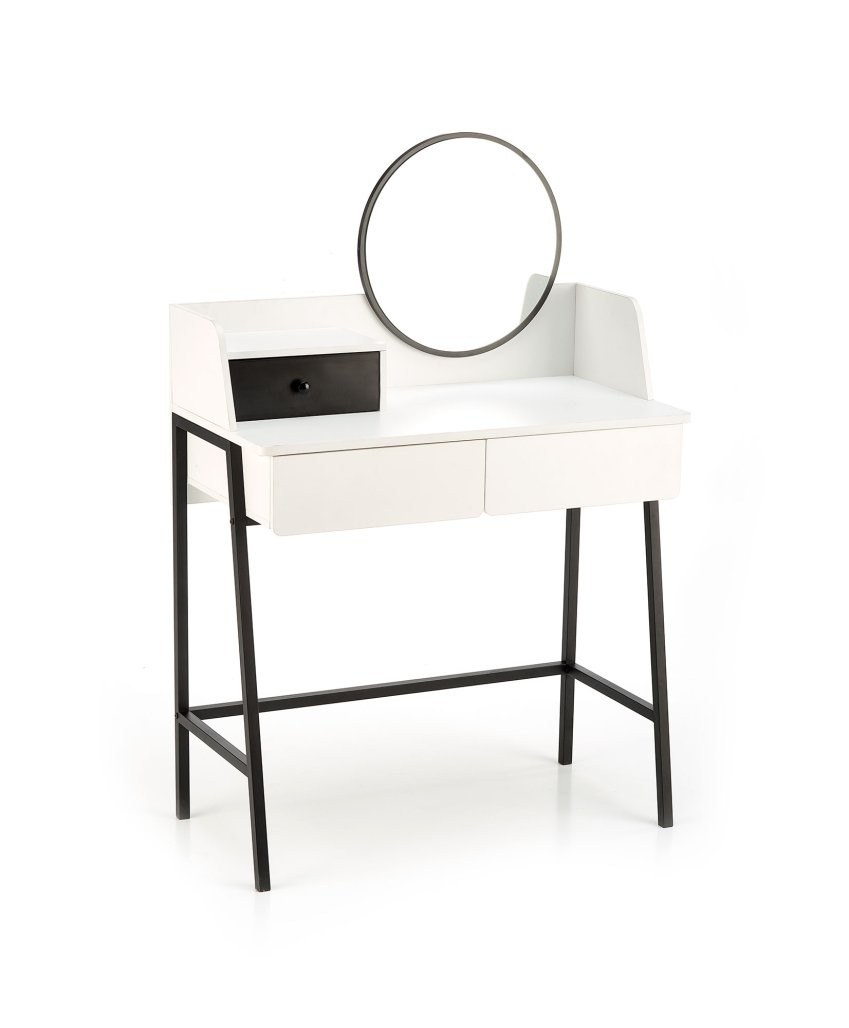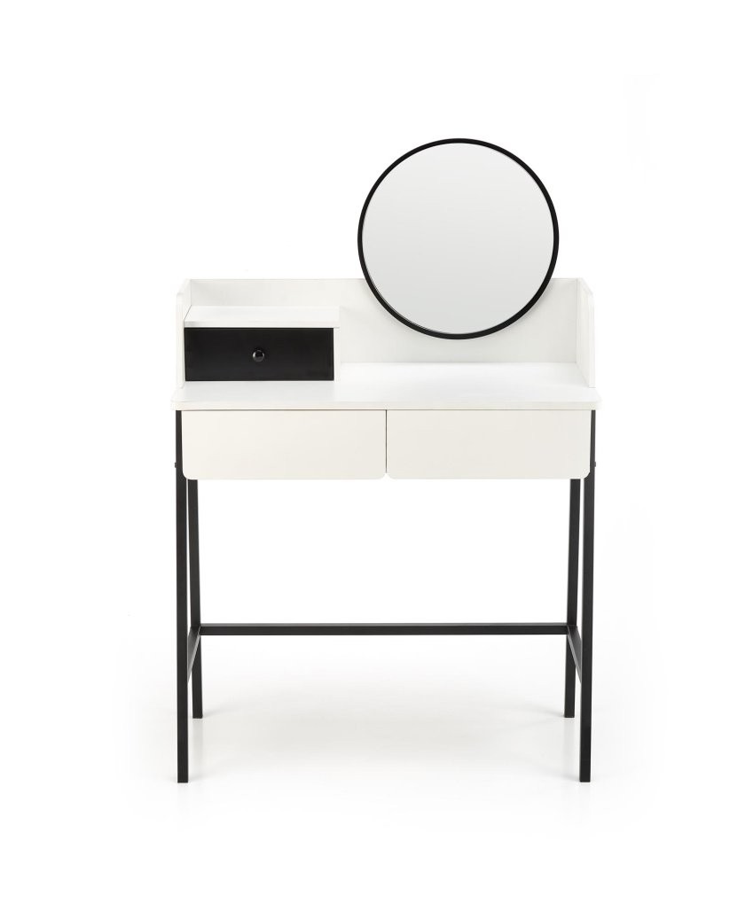Kozmetična miza Larin z ogledalom in elegantno črno-belo kombinacijo je praktičen in stiliziran dodatek za vsako spalnico ali kopalnico. Prinaša preprost, a eleganten videz.