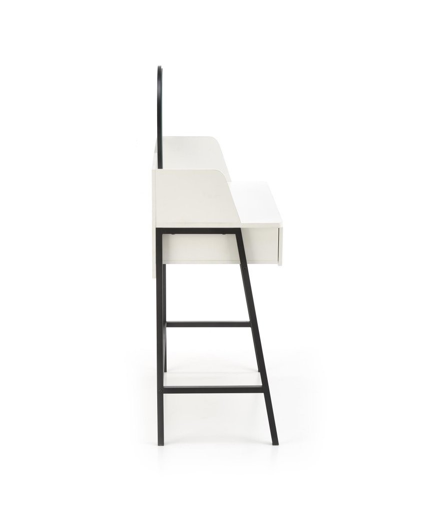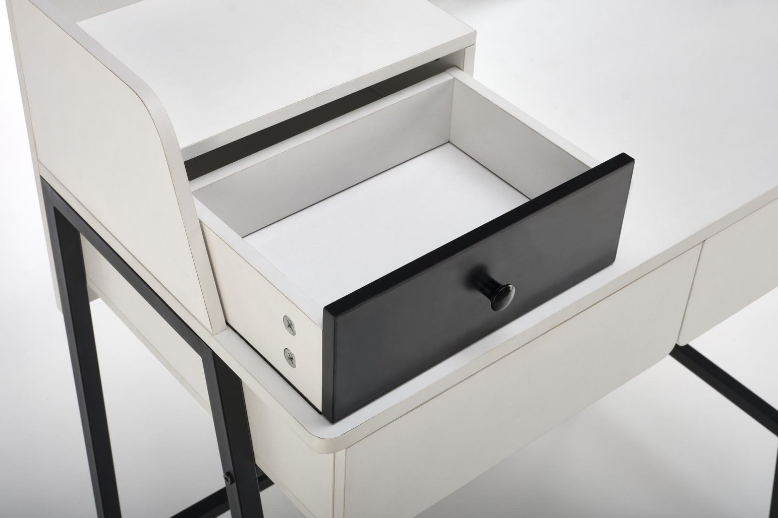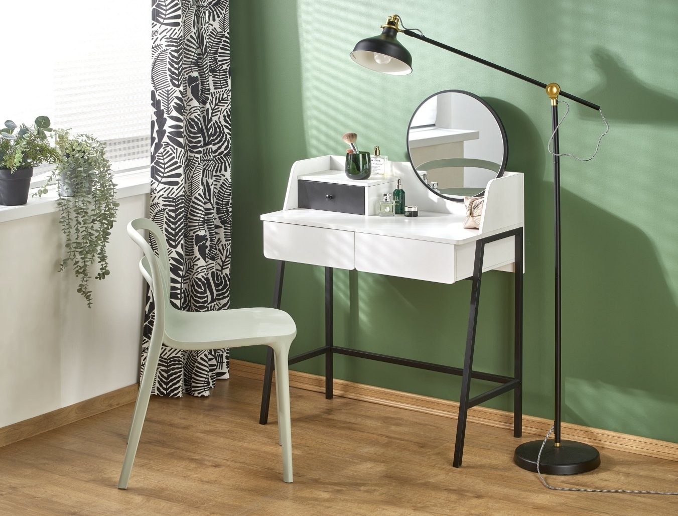 Kozmetična miza Larin z ogledalom in elegantno črno-belo kombinacijo je praktičen in stiliziran dodatek za vsako spalnico ali kopalnico. Prinaša preprost, a eleganten videz.