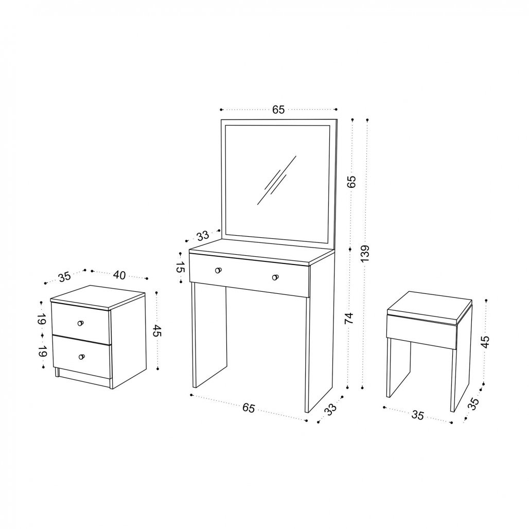 Nadgradite svojo jutranjo rutino z našo sodobno mizico za ličenje. Zaradi elegantne zasnove, obsežnega prostora za shranjevanje in trpežne konstrukcije je popoln dodatek za vsak prostor. Ne zadovoljite se z običajnim, izberite izjemno. Še danes naročite mizico za ličenje in svoj prostor spremenite v svetišče sloga in prefinjenosti.
