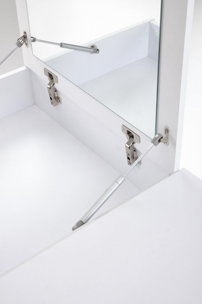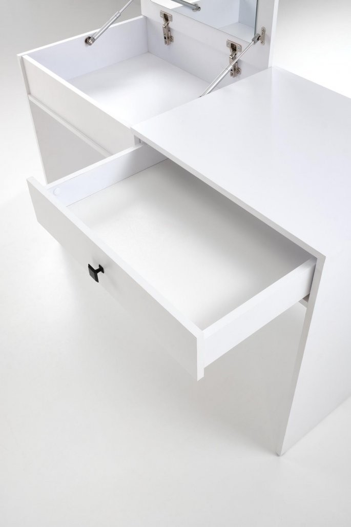 Mizica je izdelana iz kombinacije stekla in laminirane iverne plošče, kar zagotavlja trpežnost in enostavno vzdrževanje. Njen sodoben videz in čista oblika dodata pridih elegance vsakemu interierju. Kot enostaven tip izdelka je ta model na voljo v barvi belega mata.