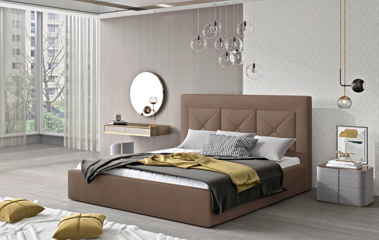 Postelja ni le udobno ležišče, temveč tudi dekorativni element, ki pritegne poglede s svojim originalnim šivanjem na vzglavju. Na voljo je v treh različnih širinah, kar omogoča prilagoditev tudi najzahtevnejšim uporabnikom.