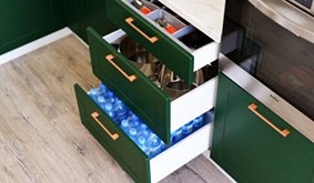 Vsa vrata in predali kuhinje ADELE imajo funkcijo mehkega zapiranja, ki ne le olajša vsakodnevno uporabo vendar tudi prepreči nastanek prask in poškodb, zato bo kuhinja dlje časa ostala dobro ohranjena.