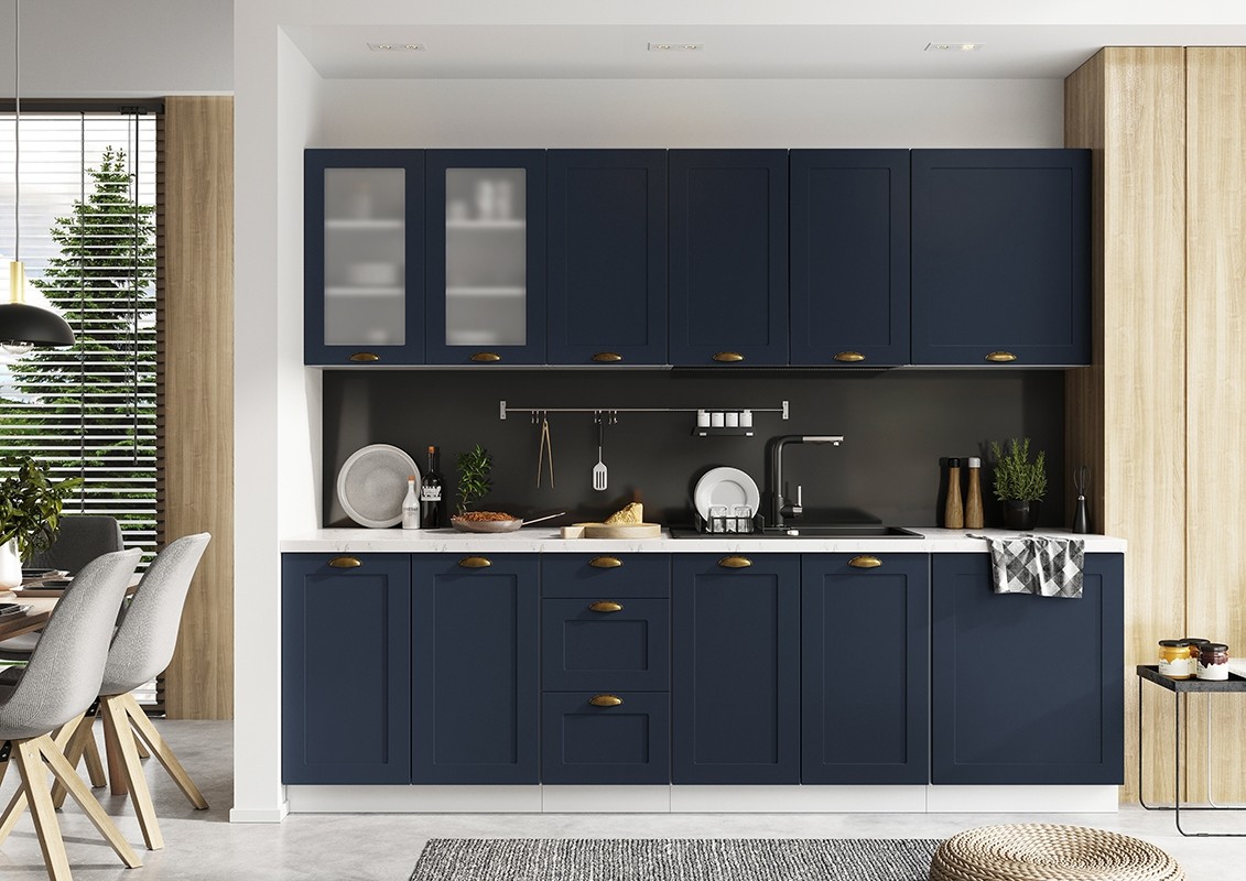 Kuhinja ADELE se ponaša z brezčasnim videzom, ki bo vedno aktualen, in ki se odlično poda v vsak dom. Kuhinja je na voljo v beli in coffee barvi, ki sta klasični barvi kateri lahko zlahka kombinirate z ostalimi barvami, v kolikor želite bolj izrazito barvo je pa na voljo tudi v temno modri.