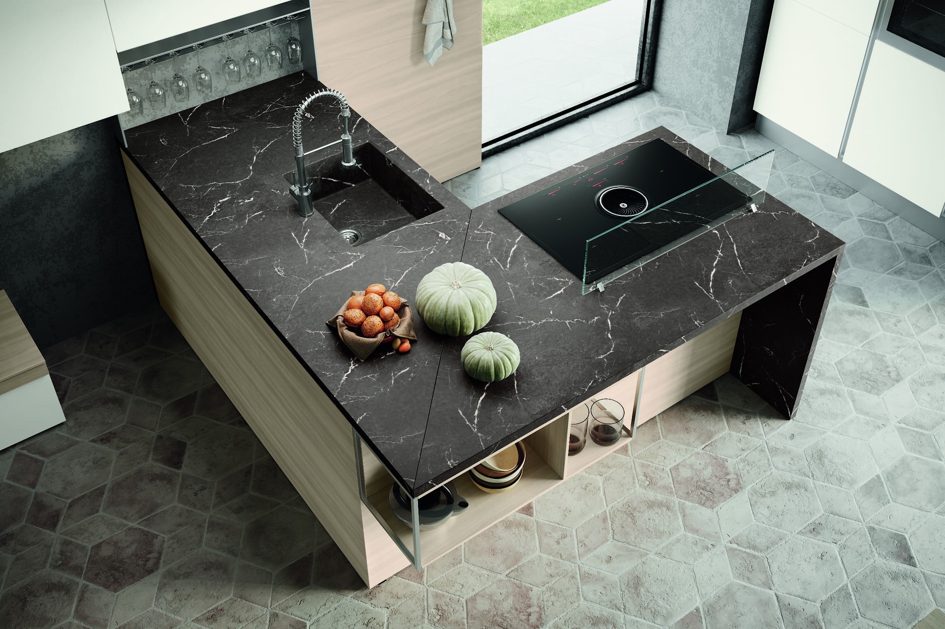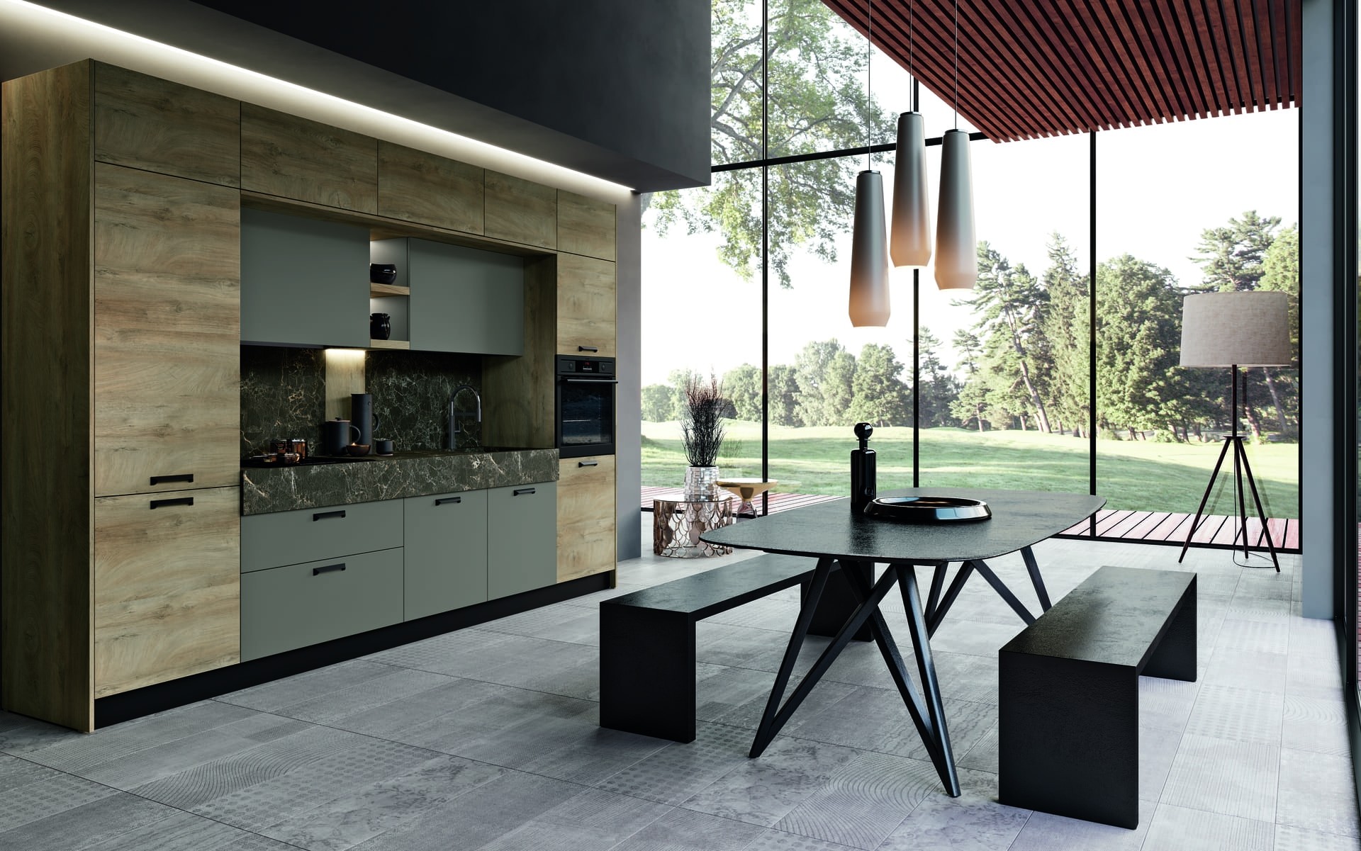 Pri sestavljanju vaše sanjske kuhinje lahko izbirate med širokim naborom barv. Fronte so lahko v različnih efektih in barvah: mat ali visok sijaj, les ali enobarvna, strukturirana... Korpus omaric pa je lahko iz dveh barv: bele ali sive. Cokli so lahko različne višine: 10, 12 ali 15cm. Pulte lahko naročite v različnih barvah.