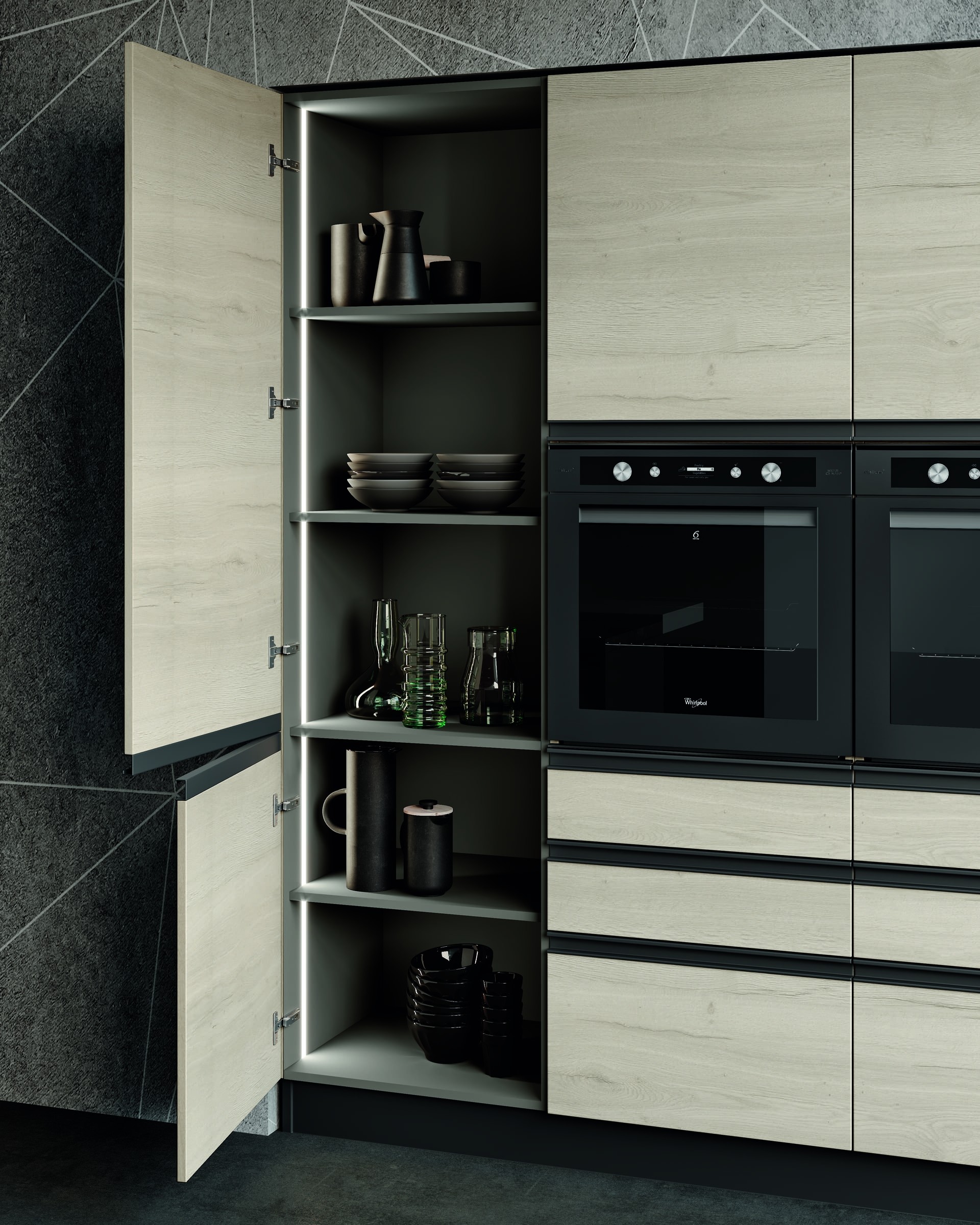 Kuhinja POSITANO vam s svojo kombinacijo različnih barv nudi brezčasen videz, ki se poda vsakemu domu. V vaš dom prinaša toplino in modern videz. Kuhinja je izdelana v Italiji in je zaradi kvalitetnih materialov zelo obstojna. Vsi elementi imajo vključen mehanizem mehkega zapiranja, kar dodatno pripomore k ohranjanju dolge življenjske dobe kuhinje. Poleg tega je kuhinja na videz brez ročk, te so skrite v konstrukciji. S kombinacijo različnih elementov omogoča optimizacijo prostora in poveča njeno funkcionalnost. Tako je kuhinja lahko center vašega doma v katerem boste uživali.