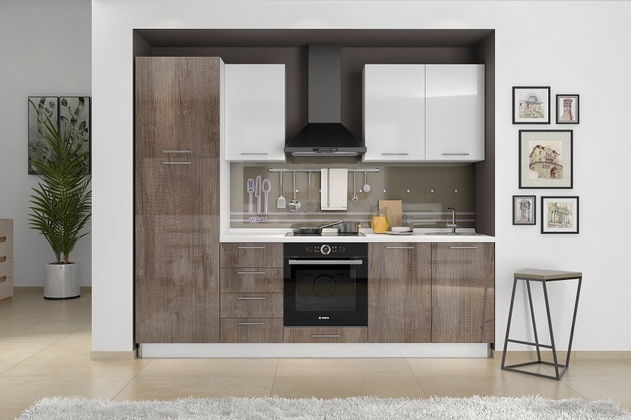 Kuhinja je en pomembnejših prostorov v vašem domu, kjer kuhamo in ustvarjamo. Elementi morajo biti trpežni in hkrati praktični, ker vanje zložimo veliko posode. Pri izdelavi elementov so uporabili kakovostne materiale. Sodobno zasnovana kuhinja vam ponuja napredno rešitev in moderno ter prefinjeno estetiko. Vrata in predali že vsebujejo mehko zapiranje.