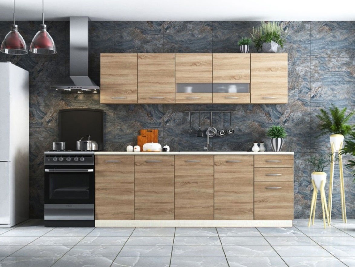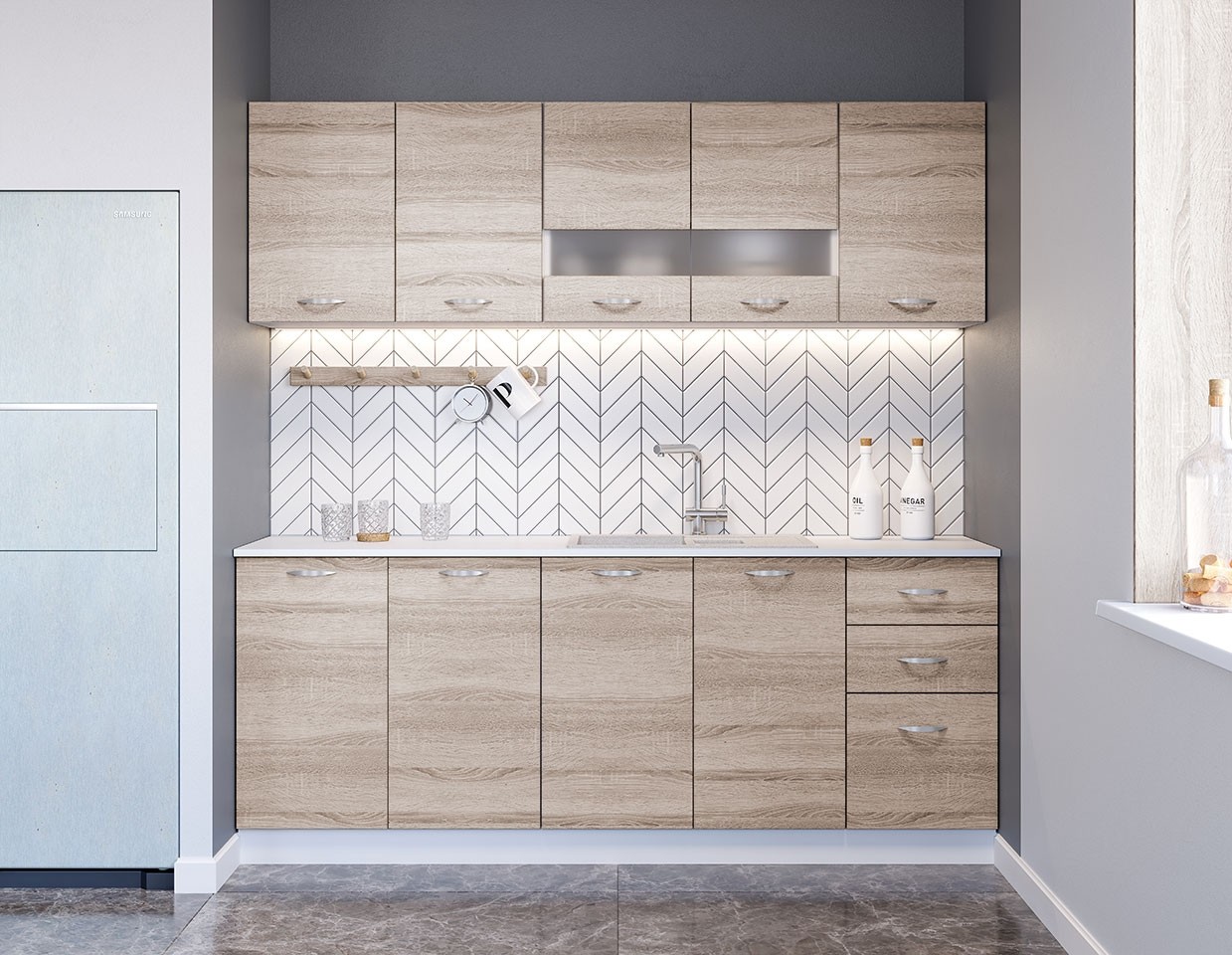 Kuhinjski blok LOGY je modernega izgleda na voljo v kombinaciji bele in sonoma barve. Kuhinjski blok ponuja veliko shranjevalne in odlagalne površine kar daje uporabniku veliko prostora za kuhinjske pripomočke, ki se lahko hitro uporabijo, ko jih potrebuje. Njegov modern videz pa ta blok lahko umesti v vsak dom, saj poživi prostor in daje željo po kuhanju. Spodnji del bloka vsebuje dve omarici širine 80 cm in eno manjšo 40 cm. Zgornji del pa tudi dve veliki omarici širine 80 cm in eno manjšo 40 cm. Kuhinjski blok zraven ne nudi korita, armature ali bele tehnike.