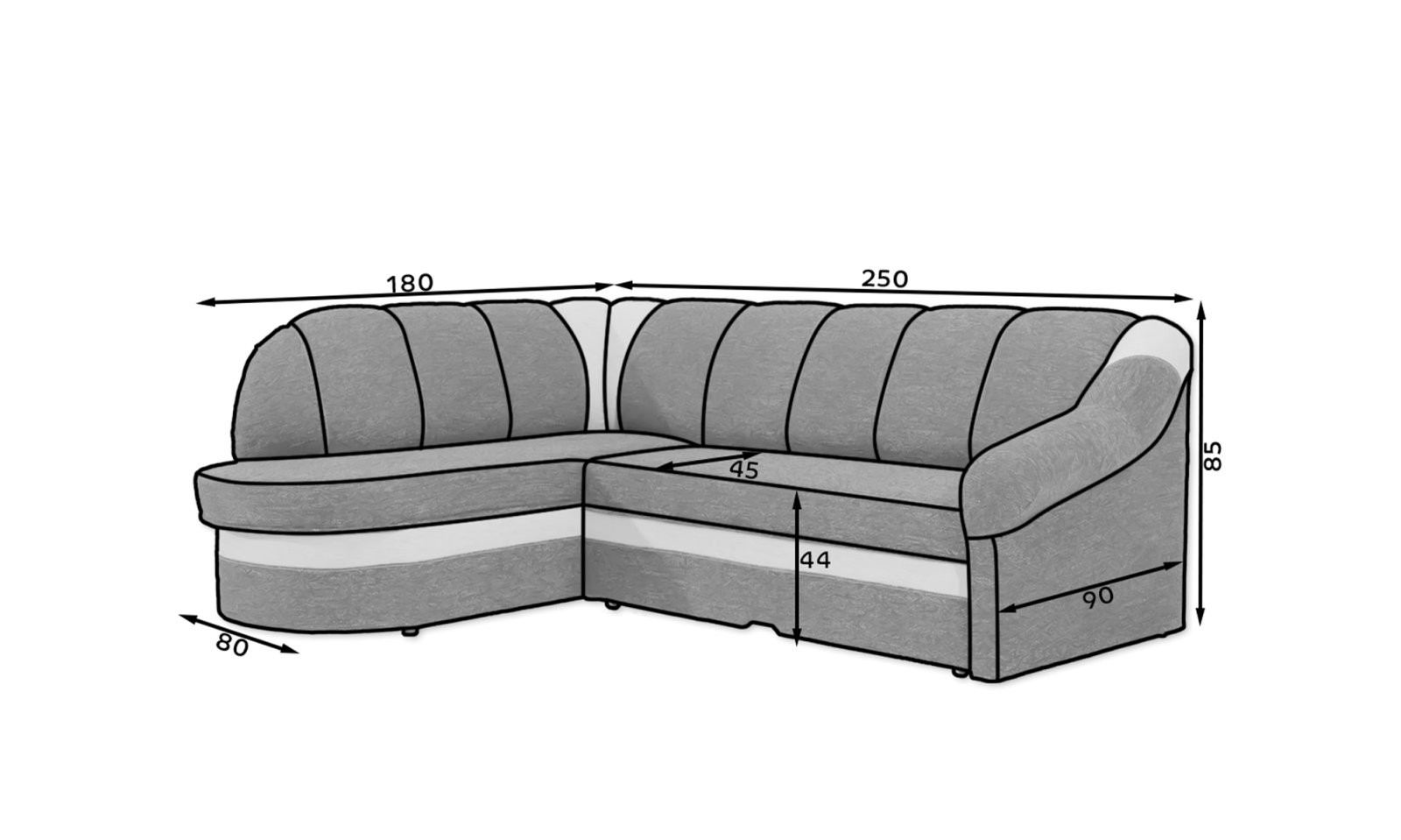 Kotni kavč Benano je popolna izbira za vse, ki iščejo kombinacijo elegance, udobja in funkcionalnosti. S sodobnim dizajnom in prefinjenimi šivi se odlično poda v vsak dnevni prostor. Poleg prostorne sedežne površine nudi tudi možnost hitre pretvorbe v udobno ležišče.