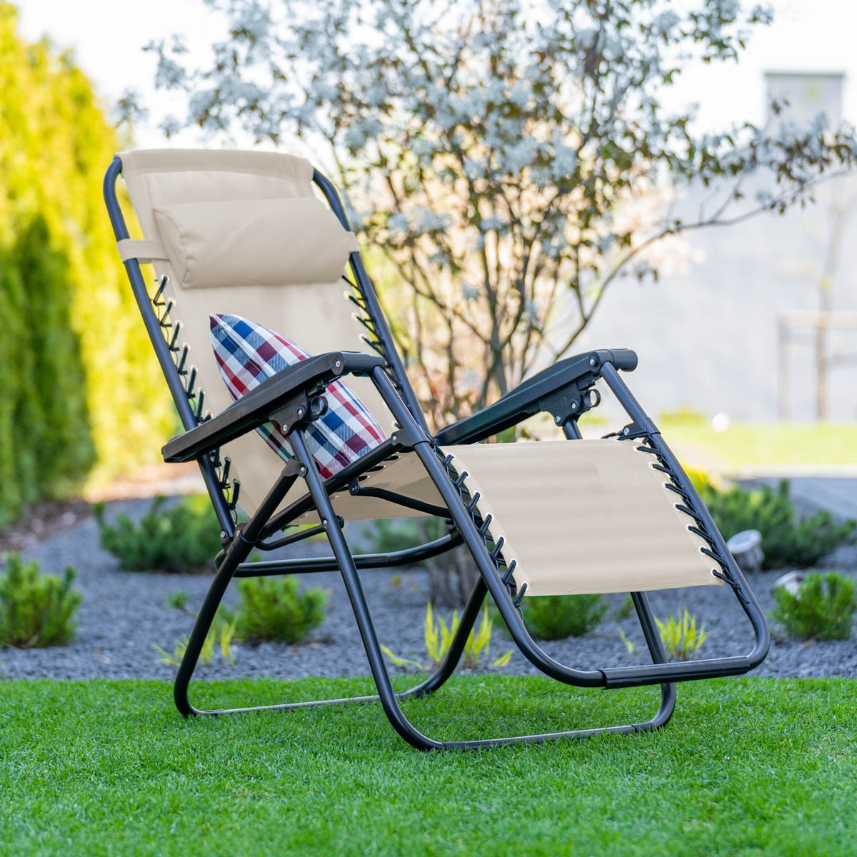 Gravitacijski ležalnik DELUXE bo vaš počitek nadgradil, saj boste lahko stol namestili točno v takšno pozicijo, ki bo vam bo ustrezala. Stol je primeren za vrt ali teraso, kjer boste lahko lovili vitamin D. Kovinsko ogrodje daje stolu stabilnost, blazina za glavo pa poskrbi za večje udobje.