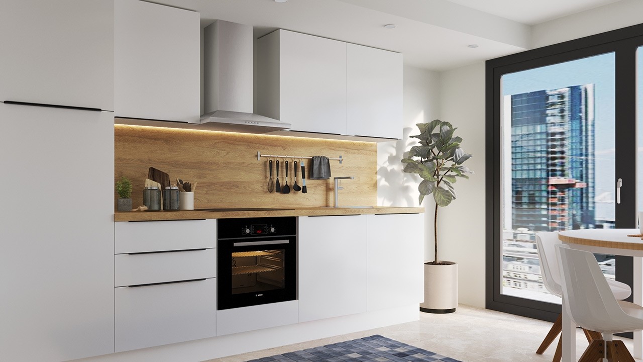 Slovenske kuhinje LUME HOME so izdelane iz najkvalitetnejših evropskih materialov, zaradi katerih bo vaša kuhinja dolgo časa ostala odlično ohranjena. Vsi elementi imajo vključen mehanizem za mehko zapiranje, ki je nepogrešljiva funkcija vsake moderne kuhinje. Elementi so skrbno izdelani iz trpežnega korpusa in kvalitetnih front z ABS robovi. Tudi posamezni deli korpusa imajo obrobljene robove, kar prepreči napihovanje materiala po dolgoletni izpostavljenosti vlagi in raznim tekočinam.