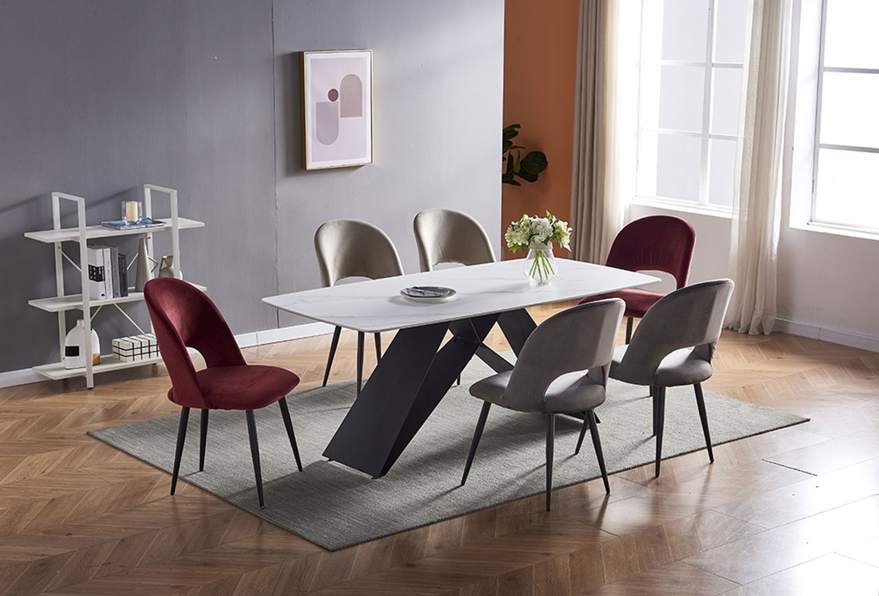 Čudovit marmornati dizajn plošče in moderno oblikovane noge jedilne mize AMAYA bodo navdušili vas in vaše najdražje, ter modernizirali vašo kuhinjo in jedilnico. Plošča je izdelana iz kvalitetne keramike, kar ji nudi dober videz in kvalitetno izdelavo.