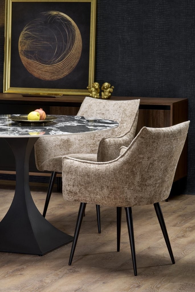 Miza Beran s črno marmornato ploščo in kovinskim ogrodjem za elegantno jedilnico ali kuhinjo. Primerna za štiri osebe, idealna za sodoben interier.