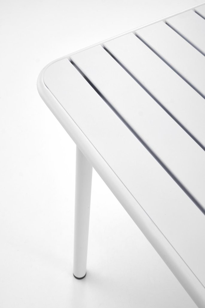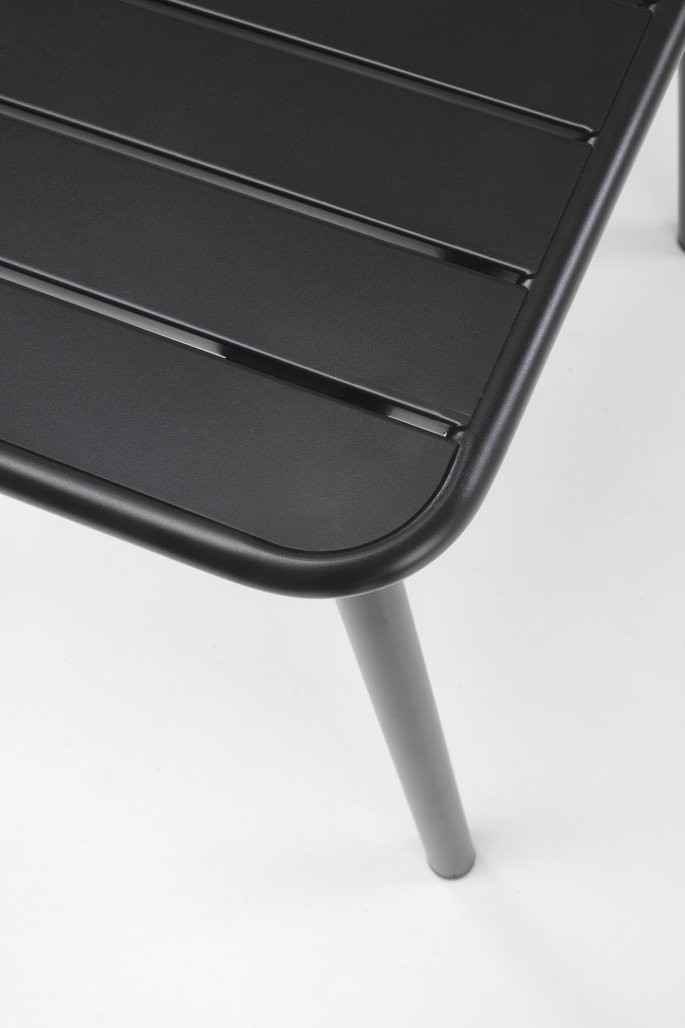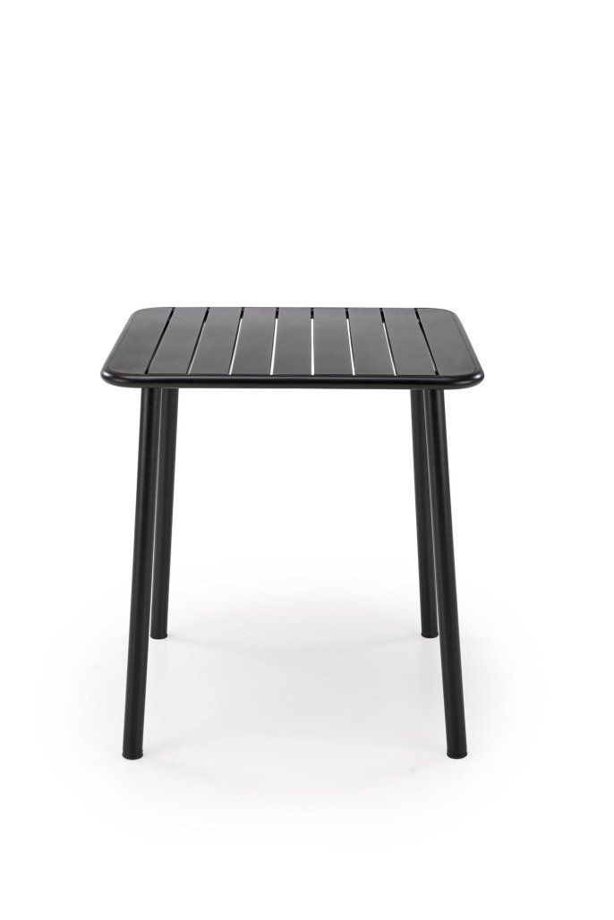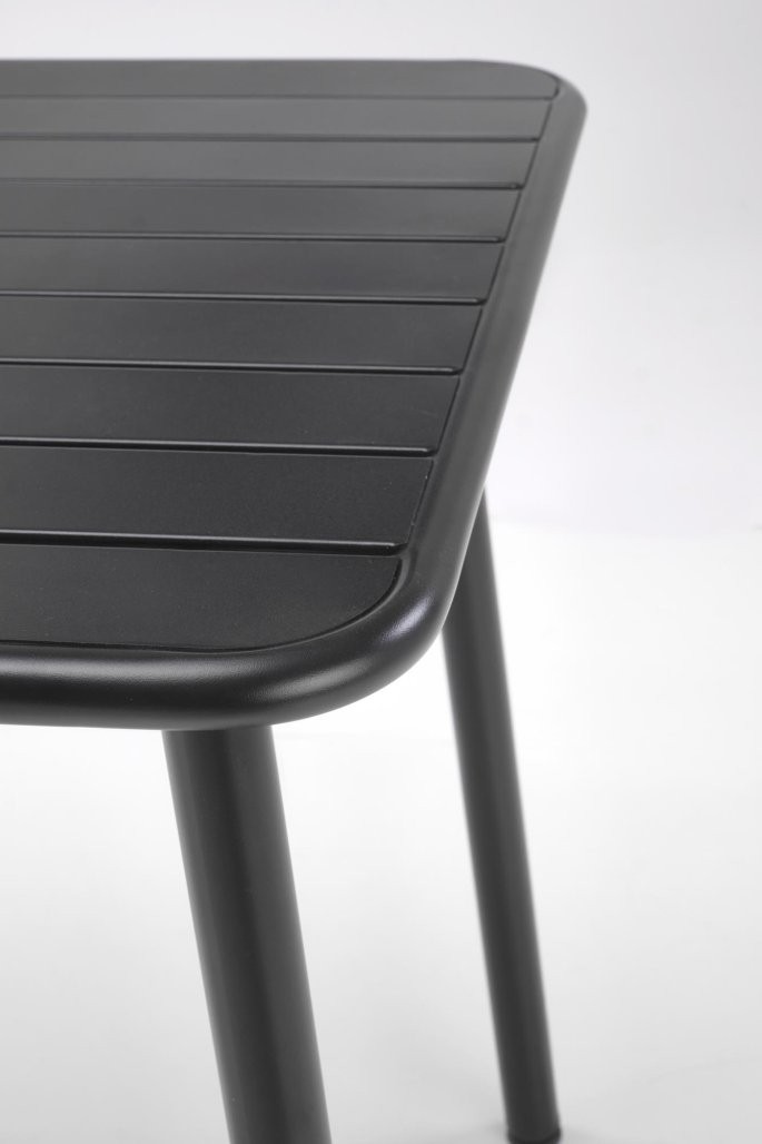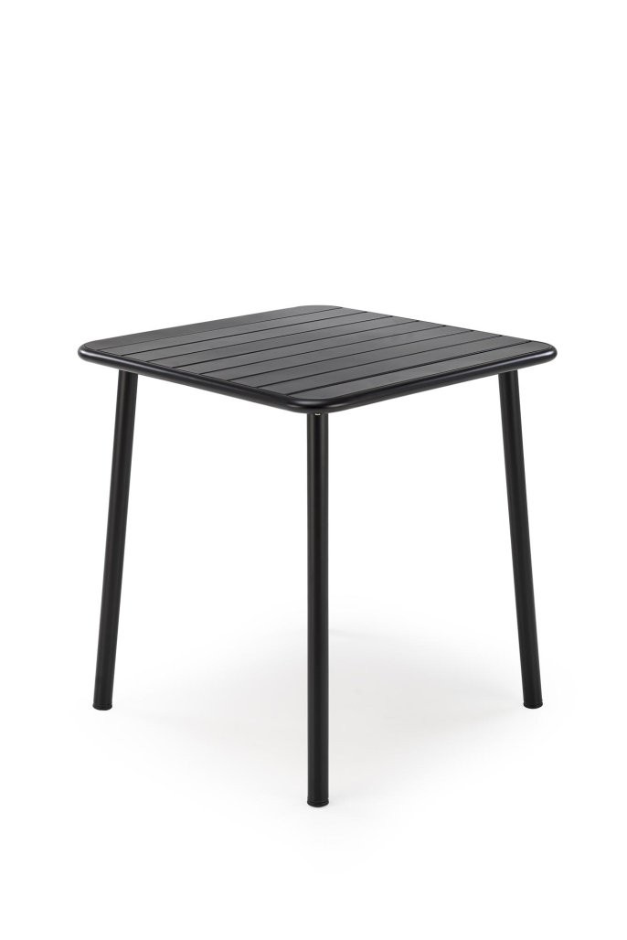 Miza Celan, na voljo v črni in beli barvi, ima kvadratno ploščo iz prašno lakiranega jekla in je primerna za sodobne jedilnice ali majhne prostore.
