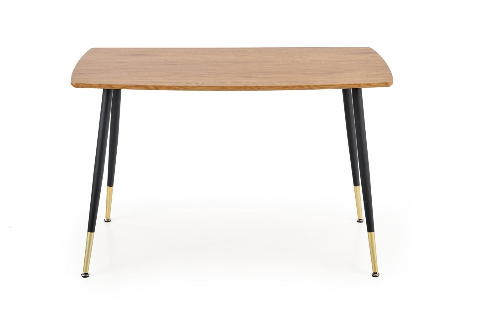 Miza Corin iz laminiranega MDF-ja z nogami iz prašno barvanega jekla in kroma. Sodobna zasnova s črnimi in zlatimi elementi, primerna za 4 osebe.
