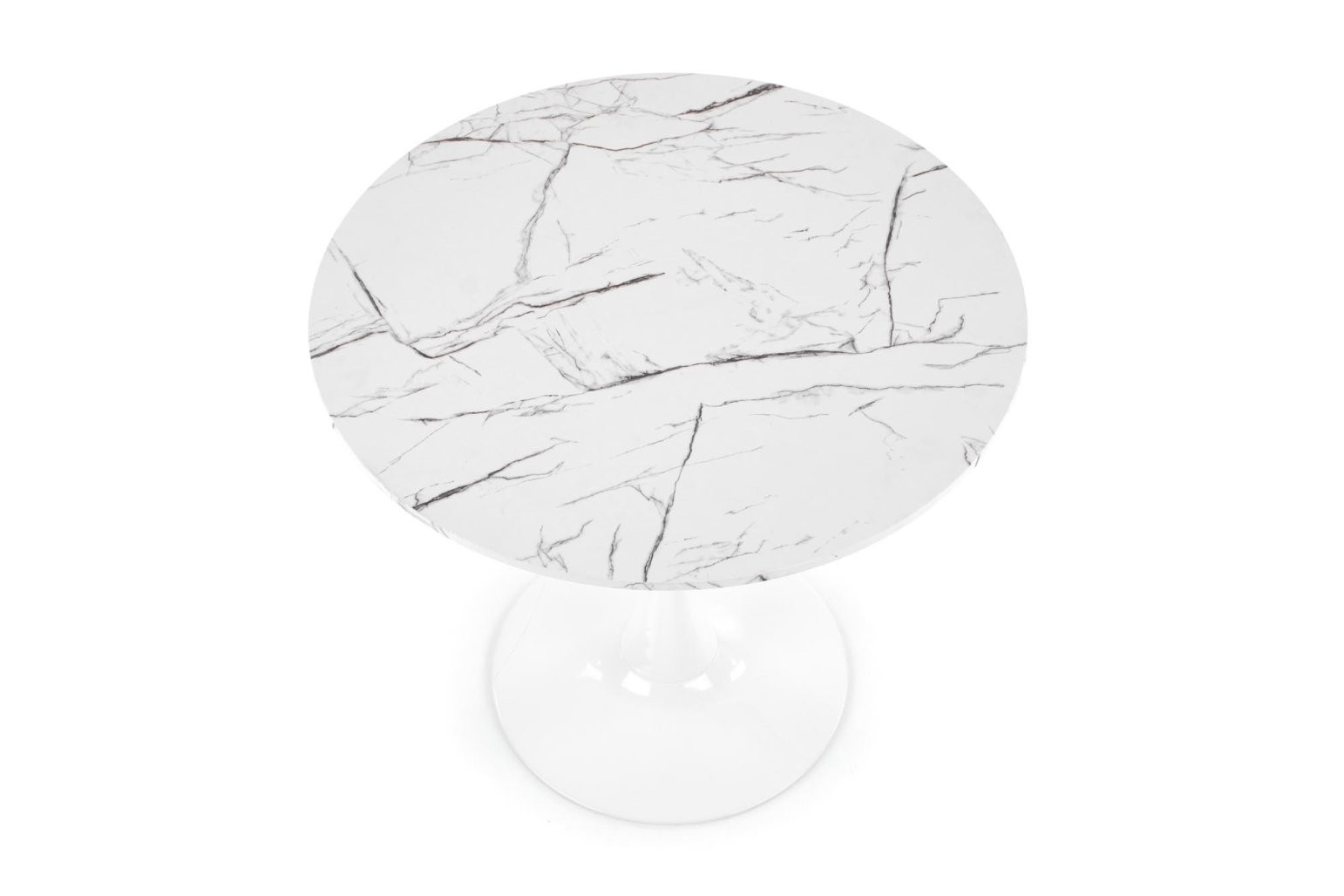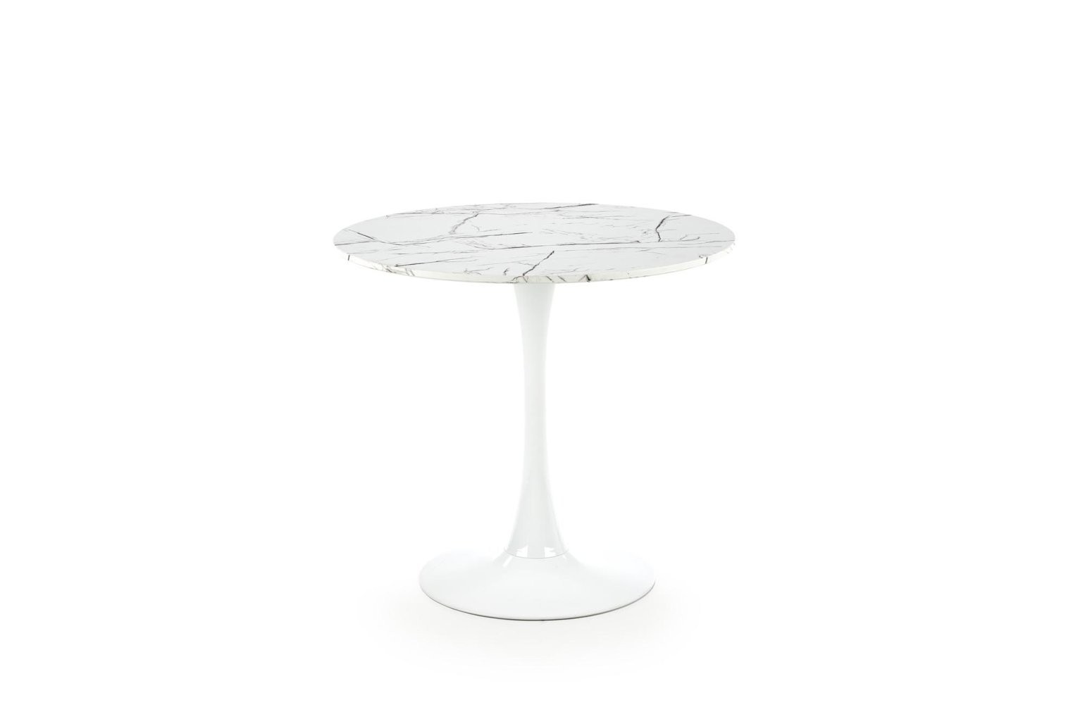 Miza Dilan z okroglo ploščo premera 80 cm je idealna za 3 osebe. Izdelana iz laminiranega MDF v beli marmornati barvi in kovinskimi nogami, ki dodajo moderen stil vsakemu prostoru. Višina mize je 73 cm.