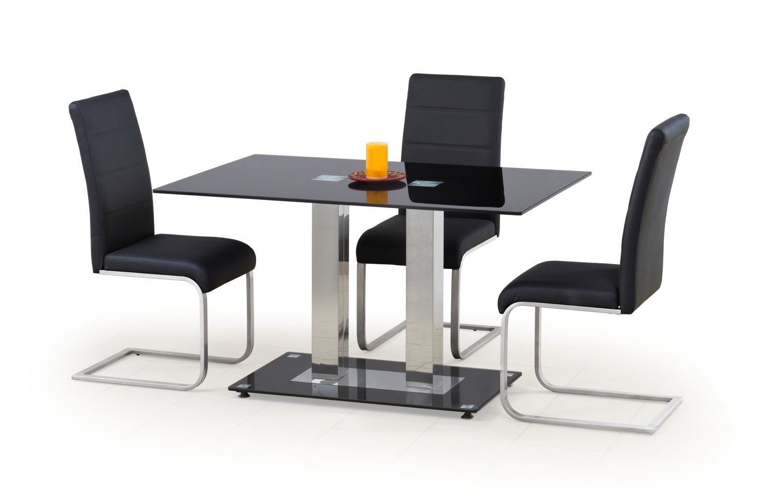 Miza Enlon iz črnega stekla in nerjavečega jekla, moderna oblika. Pravokotna mizna plošča, dolžina 130 cm, širina 80 cm, višina 74 cm. Primerna za 6 oseb.
