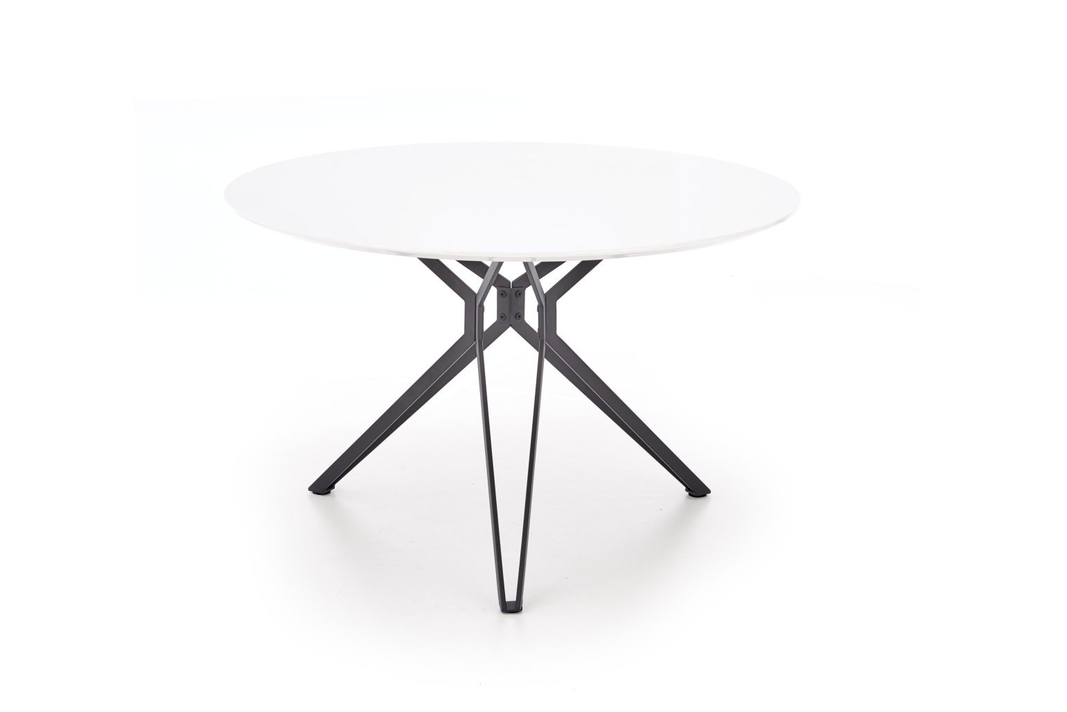 Miza Feln s sodobnim dizajnom v kombinaciji bele lakirane površine in črnih nog iz prašno lakiranega jekla. Elegantna izbira za moderno jedilnico, primerna za 5 oseb.