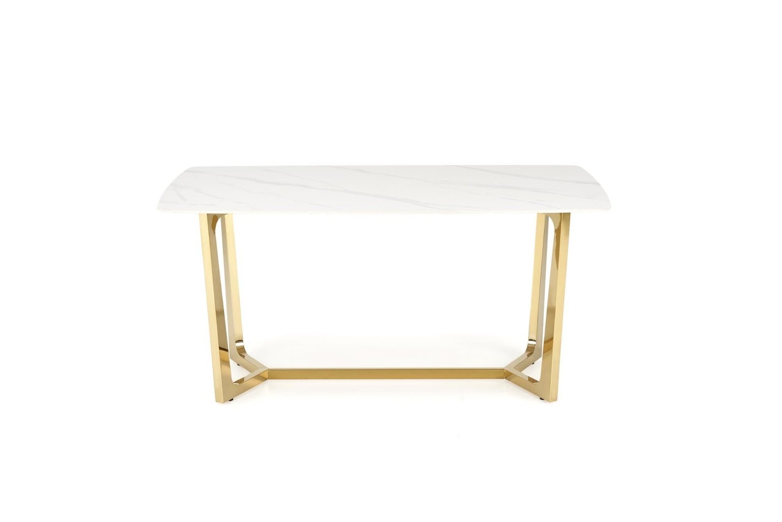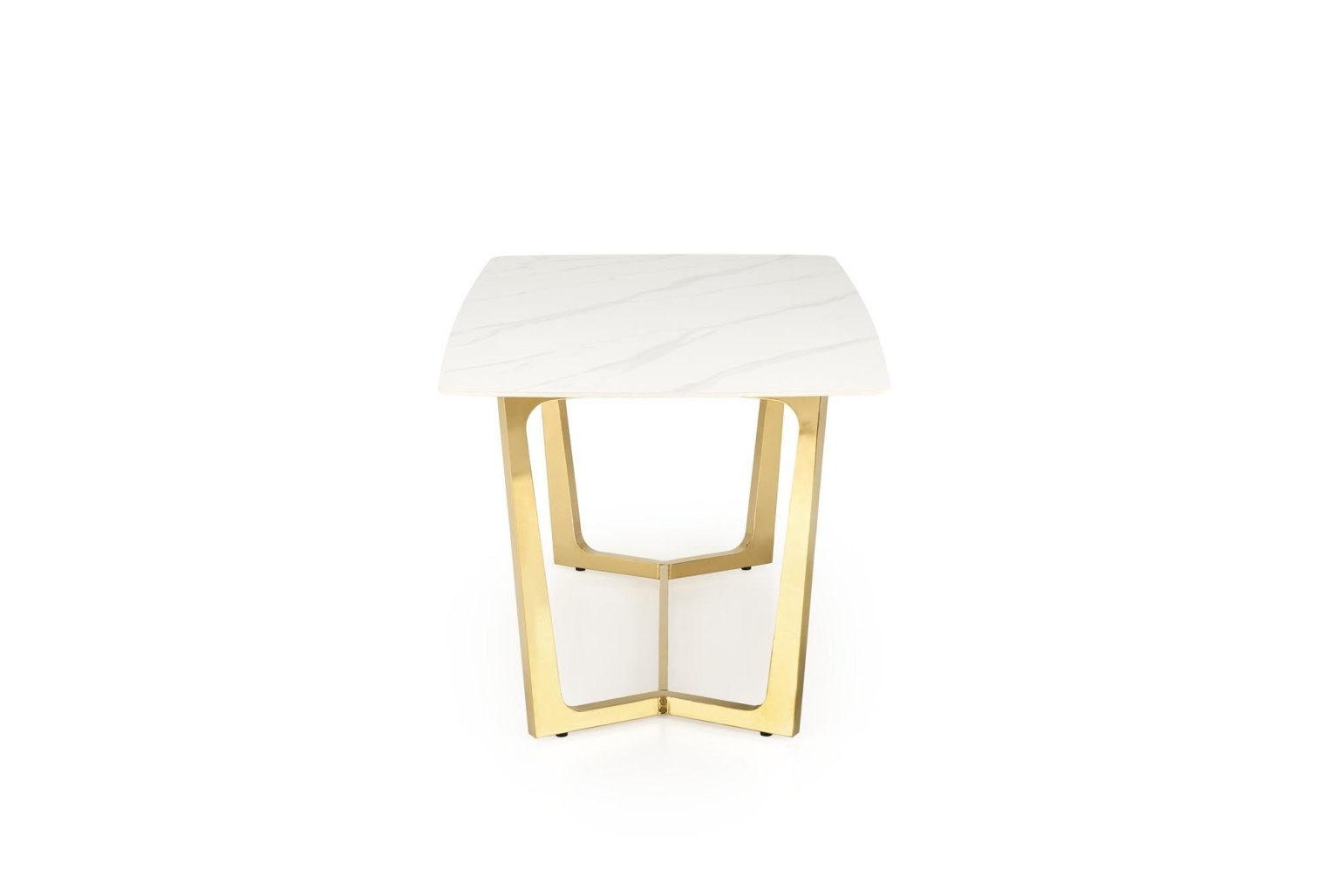 Miza Geran s sintrano kamnito ploščo in zlatimi nogami je izjemno elegantna izbira za šestosebno postrežbo. Marmorni videz in jekleno ogrodje zagotavljata dolgotrajnost.