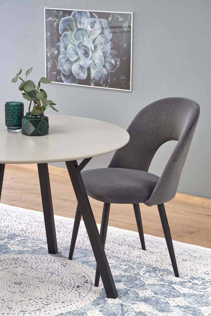 Miza Halin navdušuje z modernim dizajnom, ki združuje preprostost in eleganco. S svetlo sivo lakirano površino in črnim kovinskim podnožjem se popolnoma prilega sodobnim notranjim prostorom.