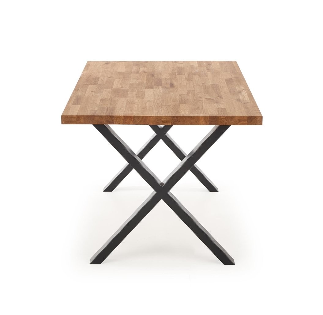 Prostorna miza Halven v hrastovem videzu združuje naravni les in črno kovinsko konstrukcijo. Primerna je za srednje velike jedilnice in prinaša toplino ter sodoben videz.