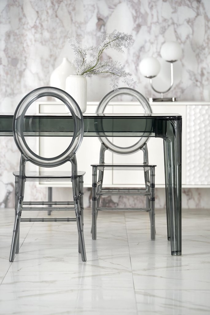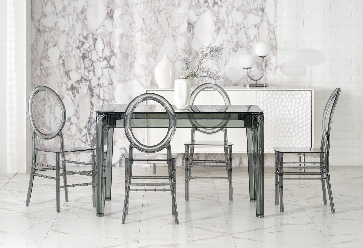 Miza Lorin z dimljenim steklom in sodobnim dizajnom prinaša prestiž v jedilnice. Pravokotna miza za 4 do 6 oseb s prozorno površino je popolna izbira za sodobne domove.