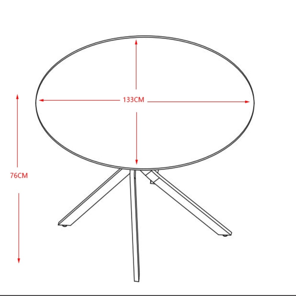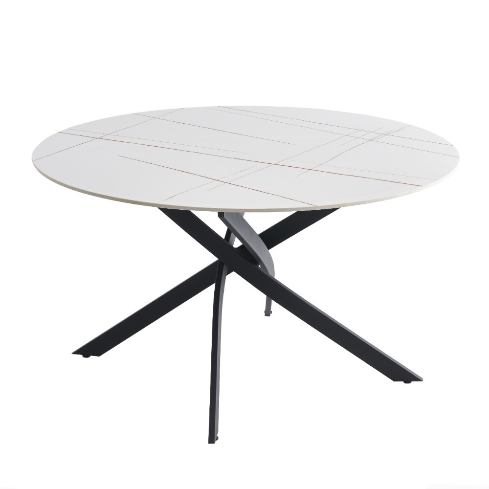 Okrogla jedilna miza METAX bo navdušila vse ljubitelje modernih in elegantnih dizajnov. Ta sodobna miza v dekorju belega marmorja z zlatimi žilami je narejena iz sintranega kamna, ki je močnejših od navadnih keramičnih plošč. Dodaten bonus je vodoodpornost mize, ter to da je prijaznejša okolju kot kemično obdelane plošče. Poseben detajl pa so črne kovinske noge, ki so abstraktno prepletene na unikaten in moderen način.