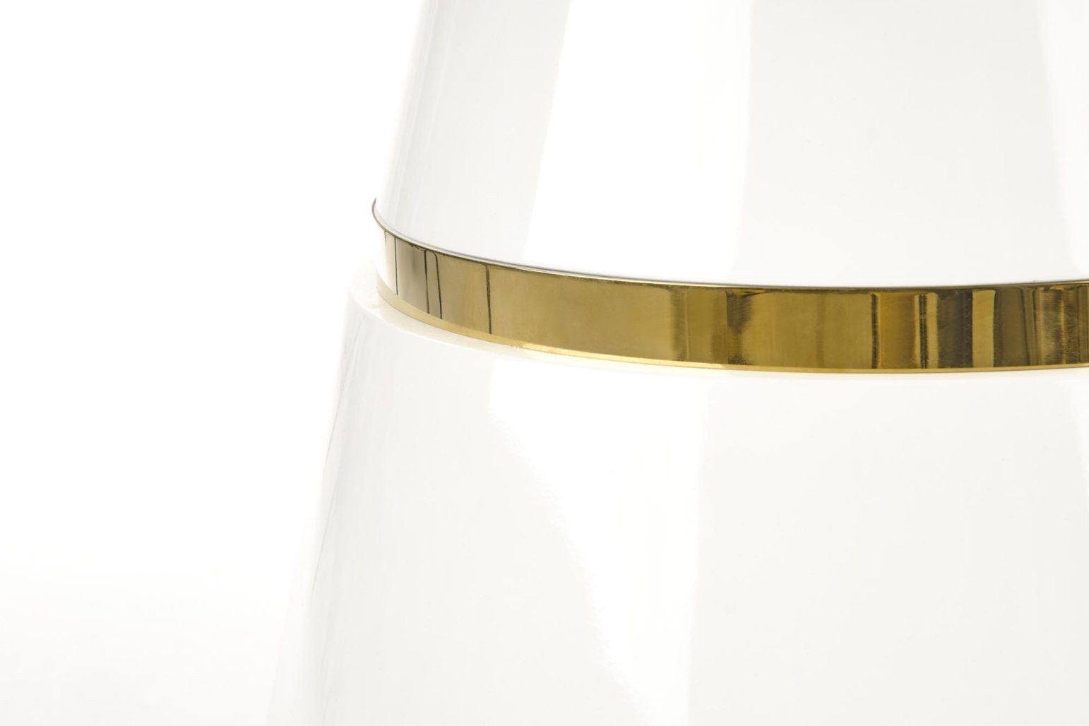 Miza Naren s premerom 120 cm, lakirana MDF površina in kromirane noge v zlati barvi. Idealna za 5 oseb, združuje sodoben in prestižen stil s čistimi linijami.