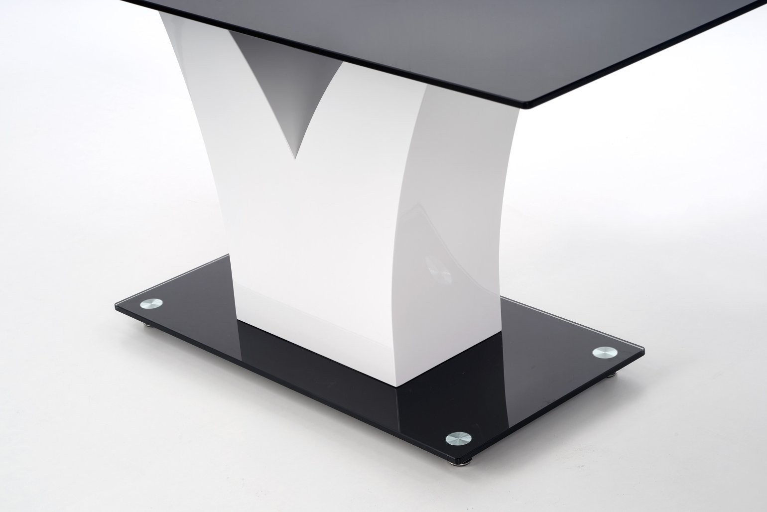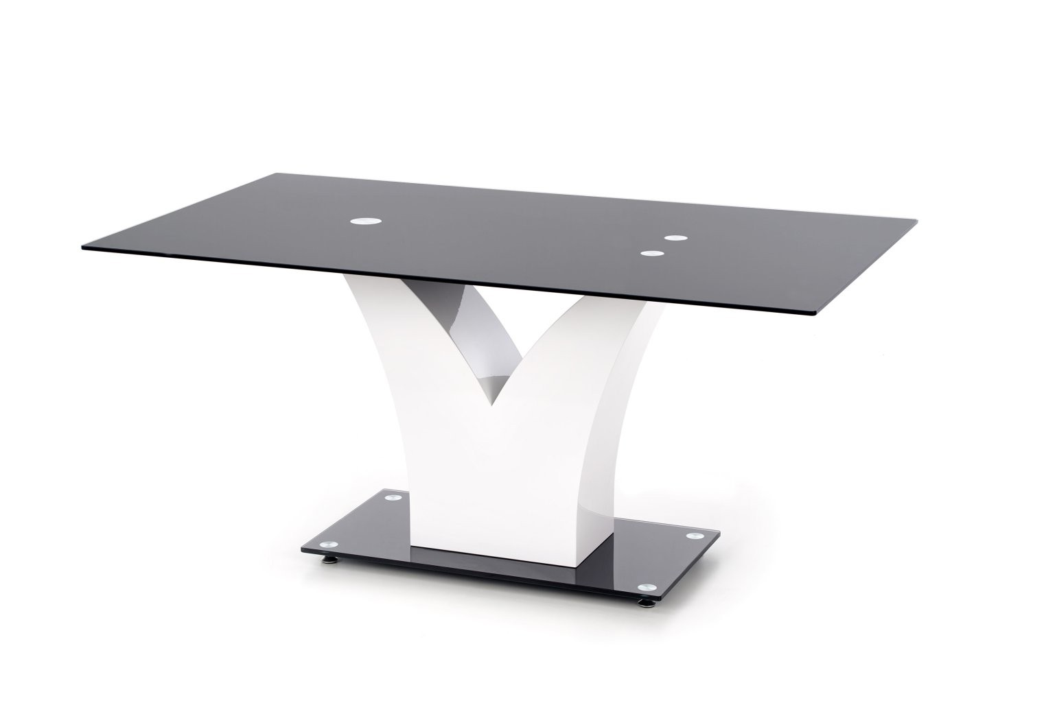 Miza Piran s pravokotno površino iz črnega stekla, dimenzije 160 cm. Združuje moderen in prestižen stil z elegantnim zaključkom za 6 oseb.