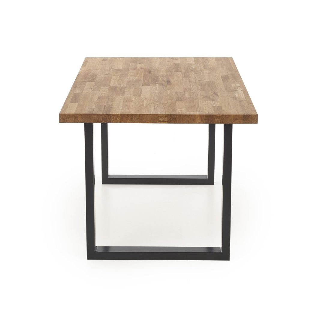 Miza Selkam dolžine 160 cm z masivno hrastovo ploščo in črnimi kovinskimi nogami je kot nalašč za sodobno jedilnico. Prilagodljiva za 6 oseb, nudi robustnost z eleganco naravnega lesa.