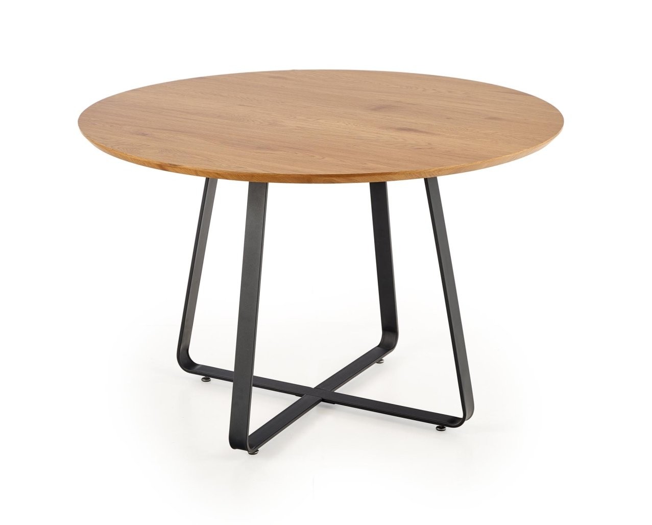 Miza Tano z zgornjo ploščo iz zlatnega hrasta in črnimi kovinskimi nogami. Okrogla oblika, primerna za 5 oseb, združuje industrijski in sodoben dizajn za vsako jedilnico.
