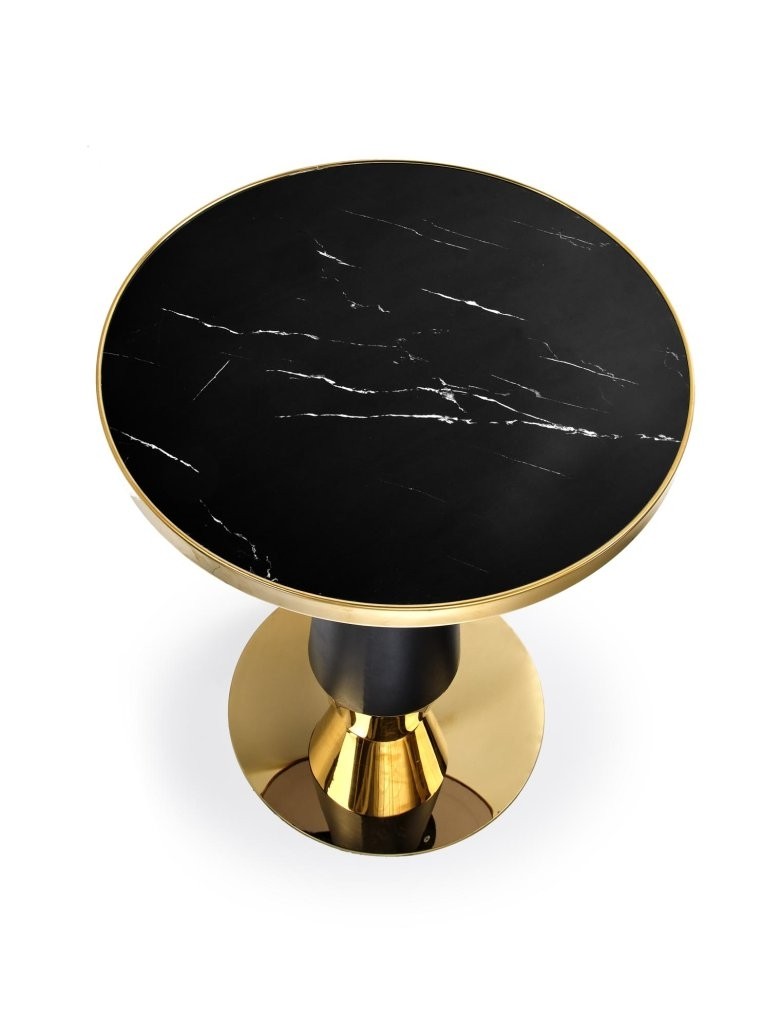 Miza Ulira s črnim marmornim vrhom in zlato obrobo ustvarja občutek prestiža. S svojo kompaktno velikostjo je idealna za manjše sodobne jedilnice.
