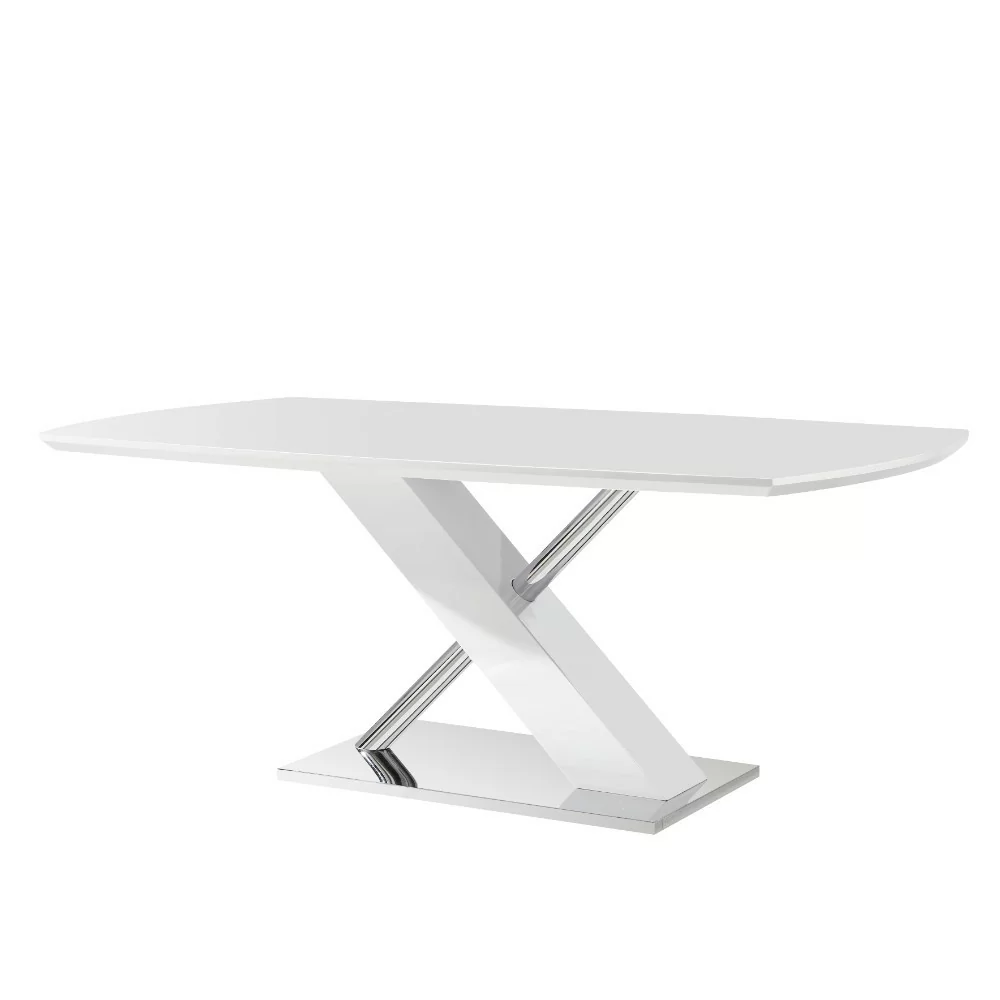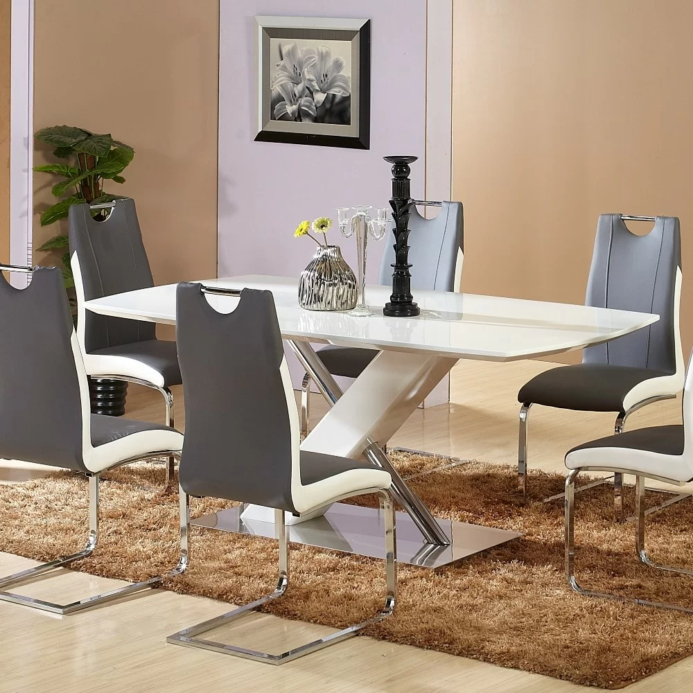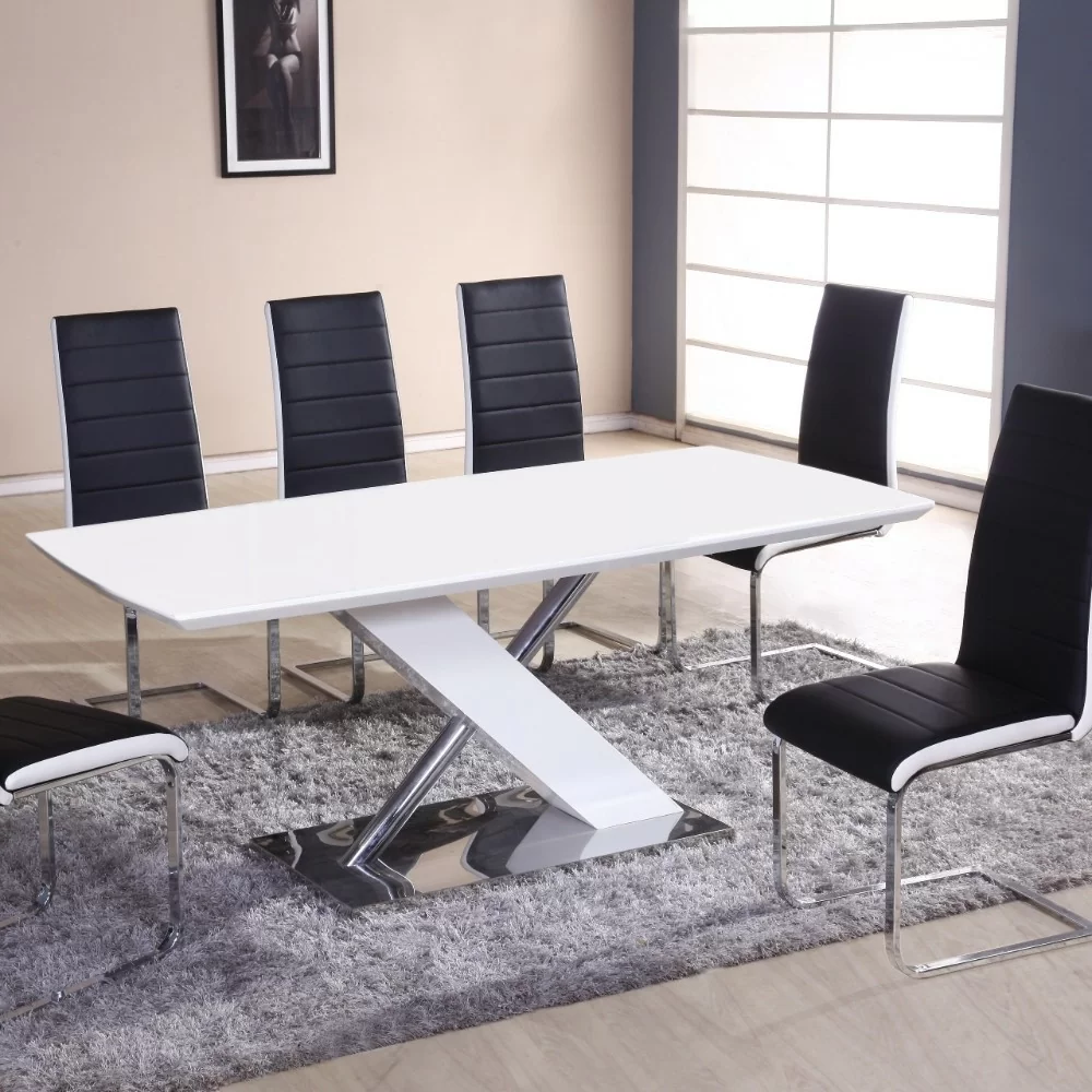 Želite moderno jedilno mizo, ampak se težko odločate med materiali? Potem vas bo elegantna miza VANJA III preprosto navdušila! Ta čudovita miza ima najboljše od obeh svetov - namizno ploščo in en steber narejen iz mediapana v beli barvi visokega sijaja, ter drugi stebr in podstavek iz brušenega nerjavečega jekla. Ta unikatna kombinacija stilov se bo odlično podala v vsak prostor in vanj prinesla sodoben videz.
