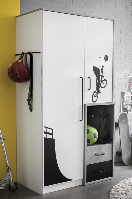 Mladinska soba Street vas bo navdušila s svojim praktičnim dizajnom. Na voljo je v kombinaciji bele, sive in črne barve.