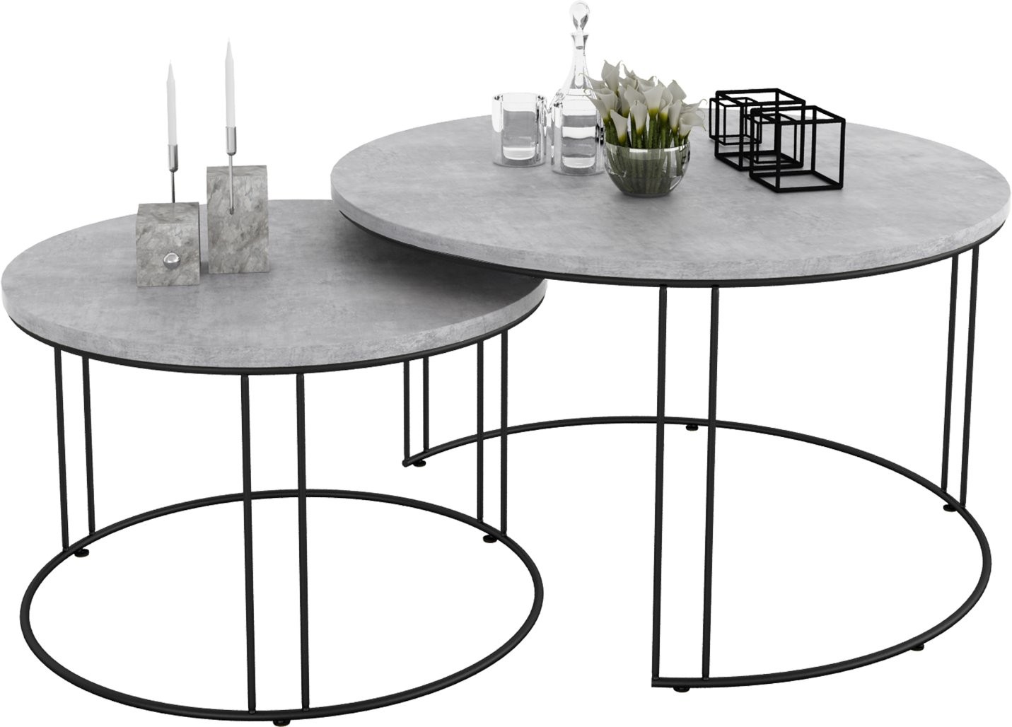 Moderna 2v1 kavna mizica ETTA, okrogla - ČRNA-BETON
